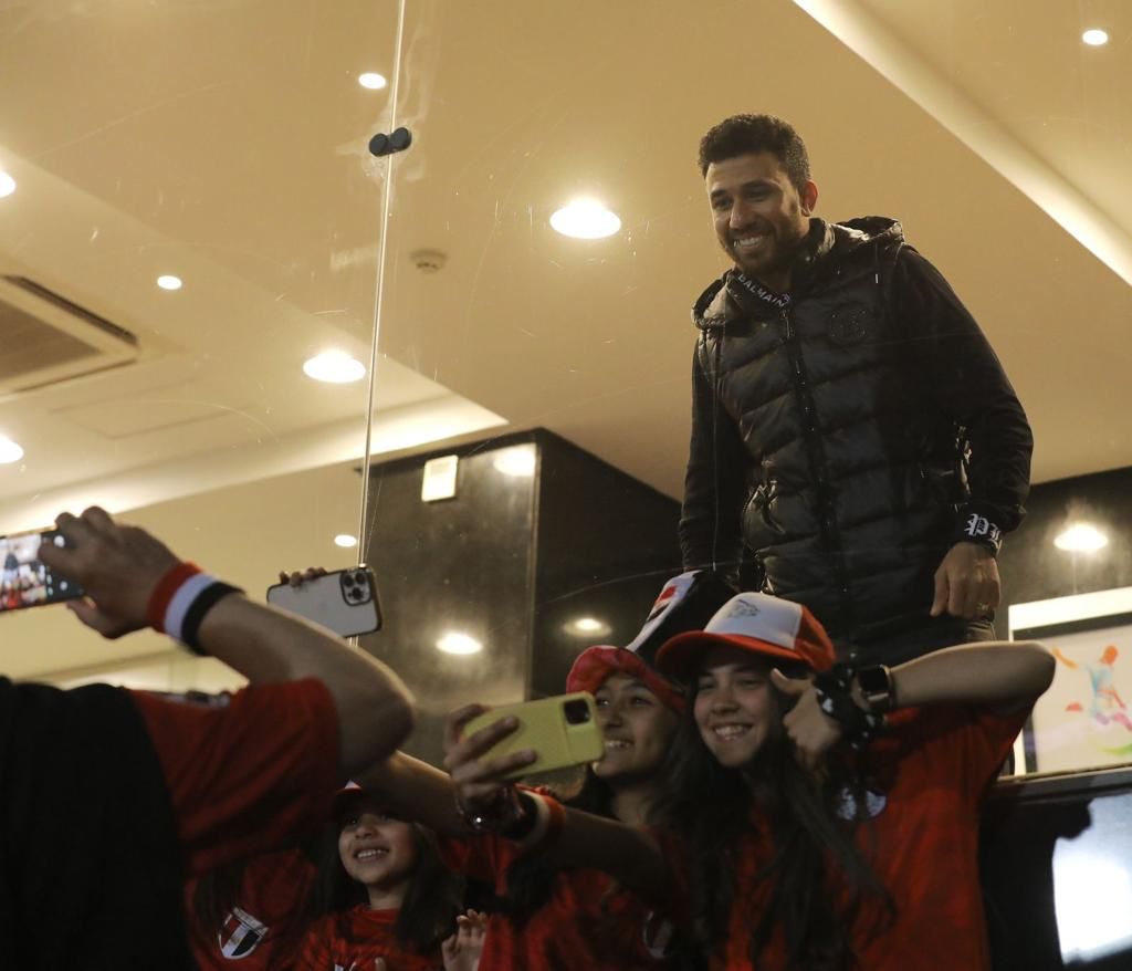 تريزيجيه يلتقط الصور التذكارية مع جماهير منتخب مصر باستاد الدفاع الجوي (صور)