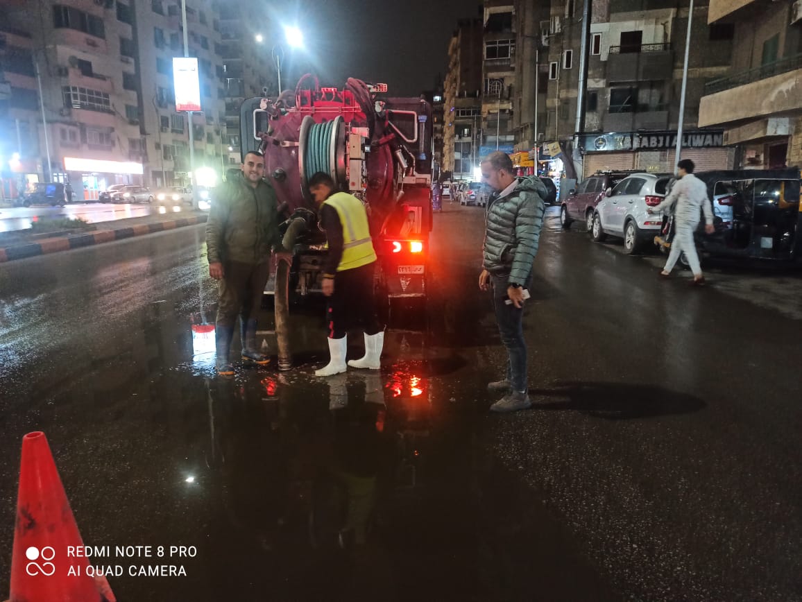 كما كلف المحافظ شركة مياه الشرب والصرف الصحي والهيئة العامة للنظافة بمواصلة نشر معدات وفرق الشفط بالتنسيق مع الأحياء والمراكز بالبؤر الساخنة ومطالع ومنازل الكباري والشوارع الرئيسية والحيوية والمحاور المرورية على مدار اليوم لمواجهة موجة التقلبات الجوية وهطول الأمطار.