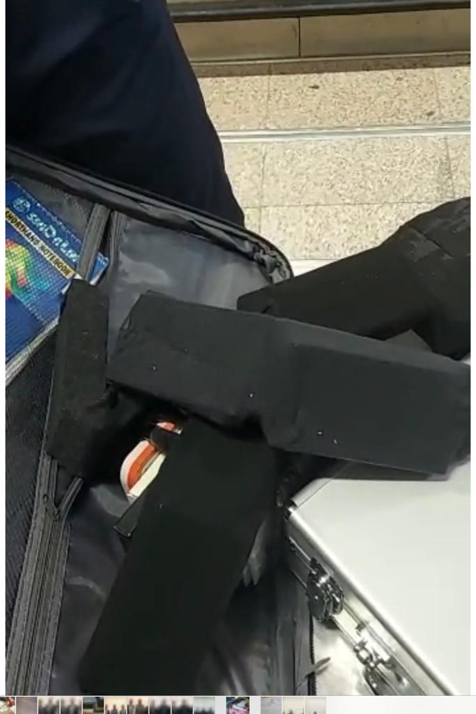 وبتفتيش حقائب الراكب علي جهاز الفحص بالأشعة بواسطة كل من عماد حمدي مأمور الجمرك، وسامح سيد رئيس القسم، واللذان تلاحظ لهما وجود كثافات معدنية وسط الملابس بالحقائب، قام جورج الفونس مدير الحركة المشرف على صالة الوصول بمبني الركاب رقم ٣، بتكليف محمود علي عباس مامور الجمرك، بتفتيش حقائب الراكب يدويا مما اسفر عن وجود أسلحة بيضاء بين طيات الملابس.