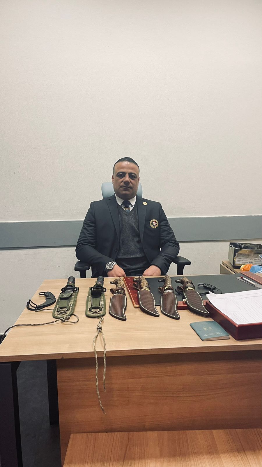 وقام تامر قاسم مدير الجمرك، بتكليف كل من محمود عباس وأحمد عبد الواحد مأمورا الجمرك، باستكمال التفتيش اليدوي بدقة مما اسفر عن ضبط عدد 8 خناجر أحجام متنوعة، أفاد تقرير ادارة الحماية المدنية بالمطار بأنه محظور حيازتهم طبقا للقانون رقم ٣٩٤ لسنة ١٩٥٤.