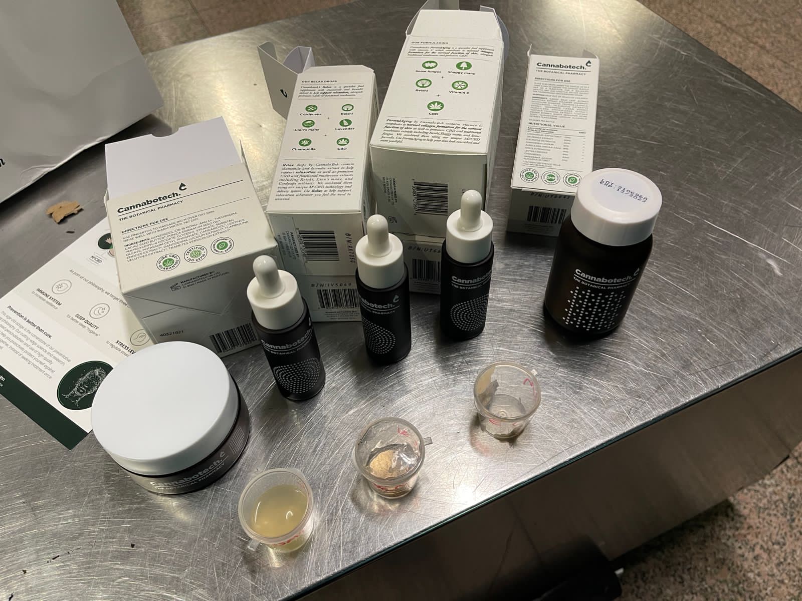 وقام حازم محمد علي مدير الحركة المشرف على صالة الوصول بمبني الركاب رقم ٣، وتامر قاسم مدير الجمرك، بتكليف بسمه حسني عبد الحميد بتفتيش حقائب الراكب يدويا، مما اسفر عن ضبط ٨ عبوات زجاجية وبلاستيكية متنوعة الأشكال والأحجام بداخلهم مخدر CBD.