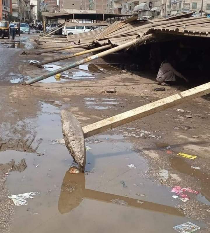 شهدت مدينة دكرنس في محافظة الدقهلية انهيار موقف سيارات بسبب الرياح.