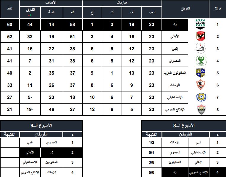 ويواصل زد تصدر جدول ترتيب الدوري الجمهورية للناشئين برصيد 60 نقطة ويليه الأهلي ثانيا برصيد 52 نقطة ثم إنبي ثالثا برصيد 41 نقطة.