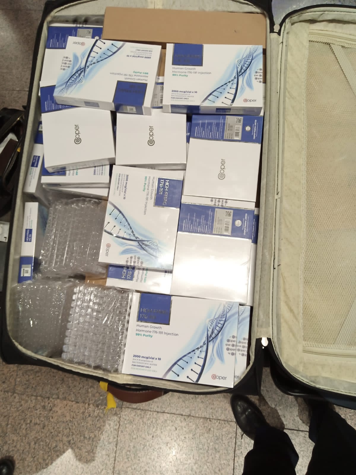 وقام أحمد فتحي عبد المجيد مدير الحركة المشرف على صالة الوصول بمبني الركاب رقم ٣، بتكليف احمد مجاهد مأمور الجمرك، بتفتيش حقائب الراكب يدويا مما اسفر عن وجود كمية من مستلزمات طب وزراعة الأسنان باجمالي عدد ٧٦٤٢ عبوة متنوعة، بالإضافة الي 10 هواتف محمولة، وقام احمد علي مدير الجمرك بتشكيل لجنة مكونه من السيد موسي وشريف عيد مأمورا الجمرك، تحت اشراف عمرو عبد المنعم مدير الحركة، لعد وجرد وتوصيف وتحريز المضبوطات.