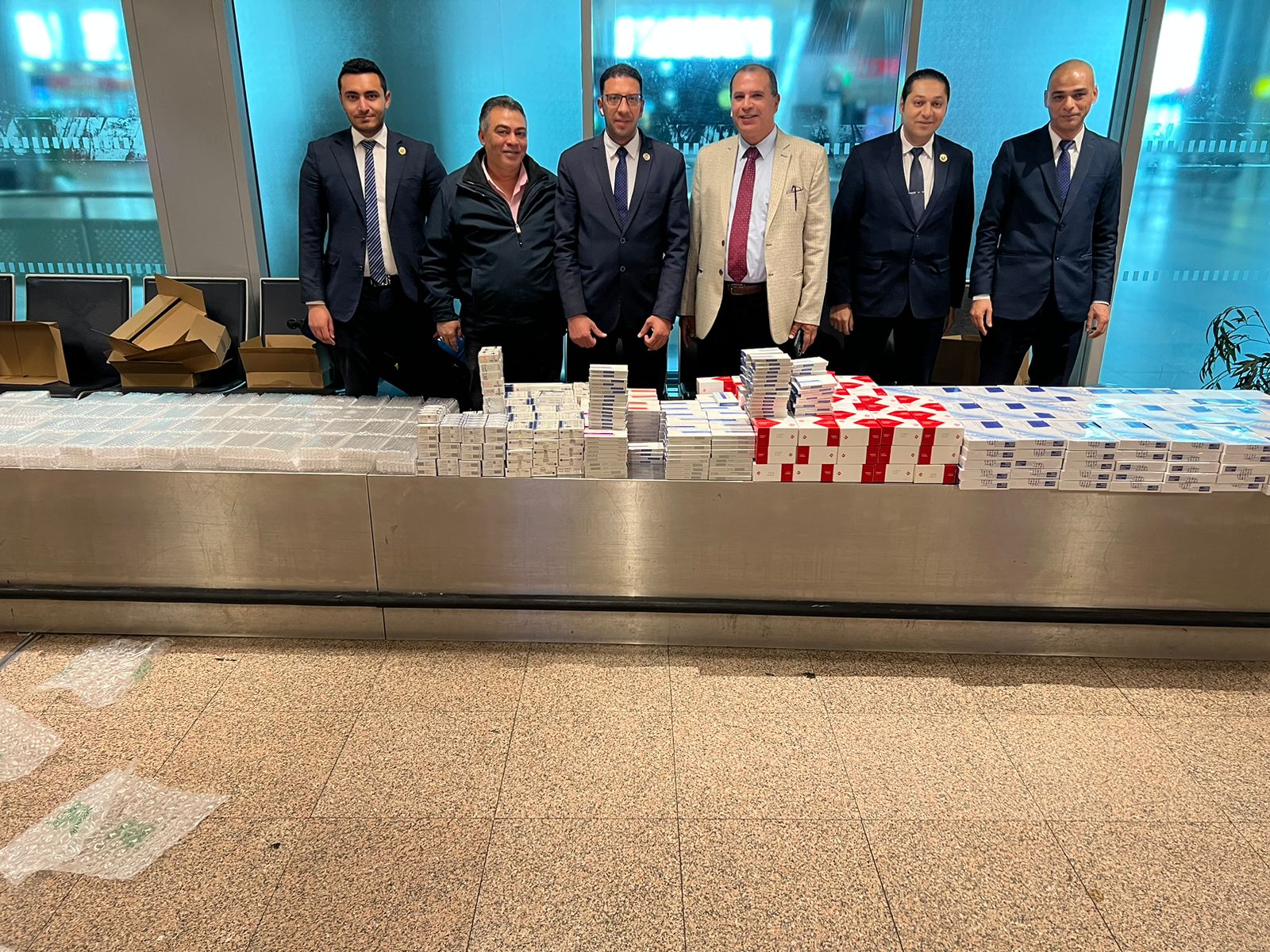 ضبط راكب حاول تهريب 7642 عبوة مستلزمات طب الأسنان بمطار القاهرة (صور)