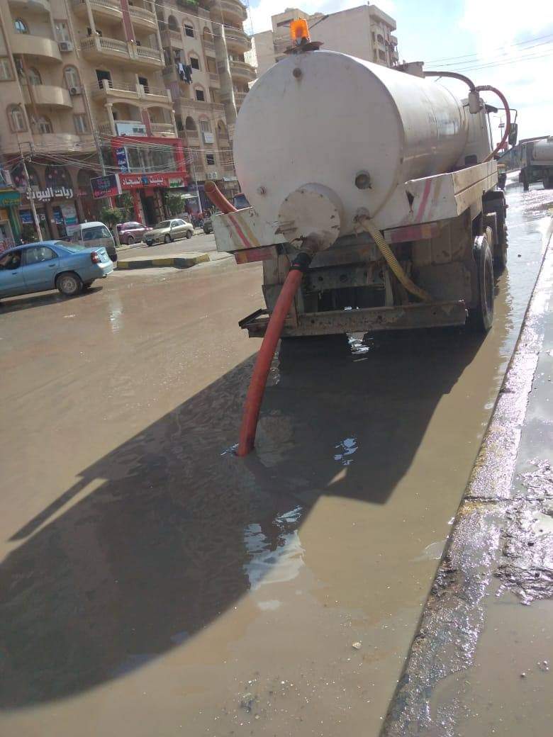 استمرار أعمال شفط مياه الأمطار من شوارع البحيرة (صور)