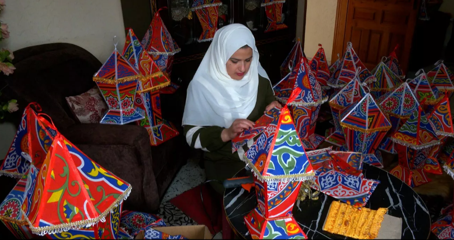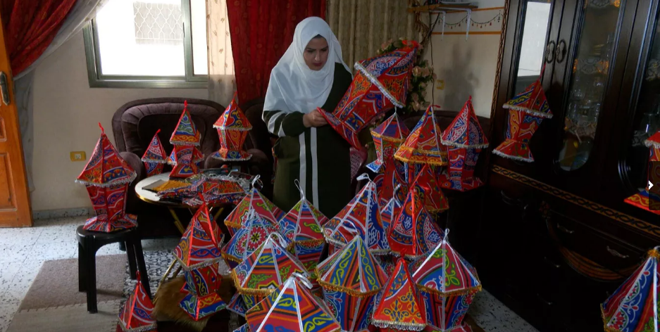 تعكف الفلسطينية علا أبو سليم من دير البلح وسط قطاع غزة، على صناعة مزيد من الفوانيس مع قدوم شهر رمضان، بهدف تحسين الوضع المادي لأسرتها، وممارسة مهنة تحبها وتنتظرها كل عام.