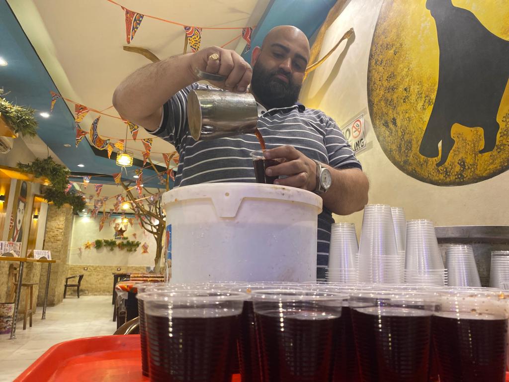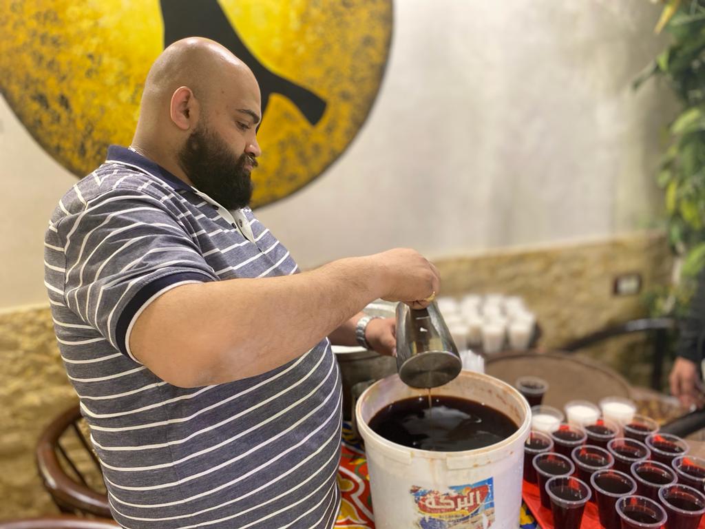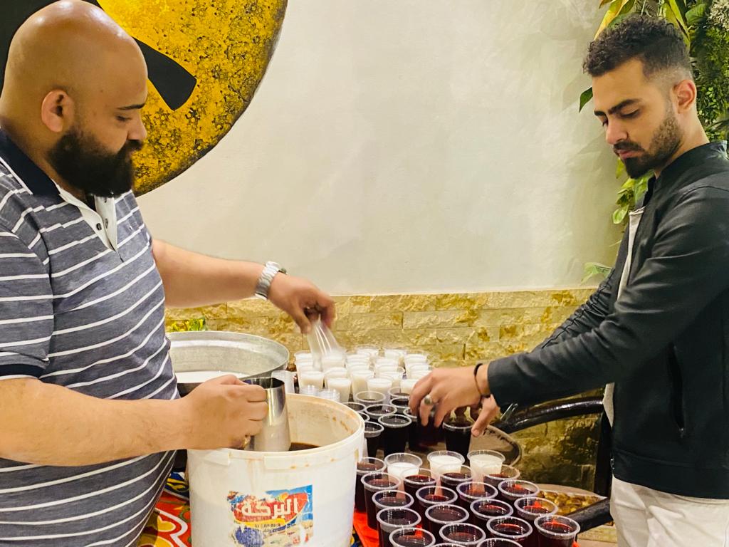 مينا لم يكن بمفرده ولكن يوميًا يصطحب العاملين معه في الكافيه في الوقف على الطريق وسط حالة من الفرحة عند مشاركتهم قبيل أذان المغرب بساعات في تجهيز التمر والسوبيا والبلح لإفطار الصائمين في الشوارع.