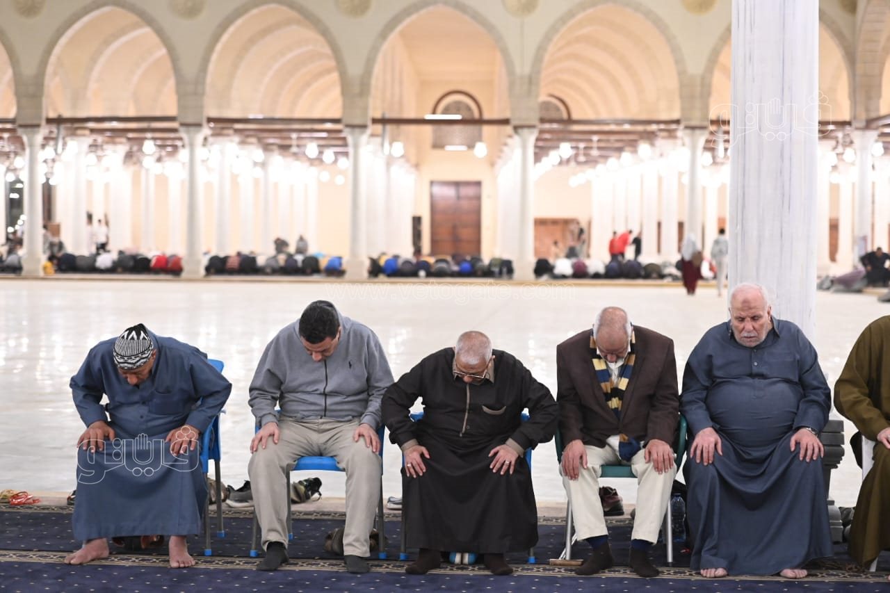 المئات يؤدون صلاة التراويح من جامع عمرو بن العاص (صور)