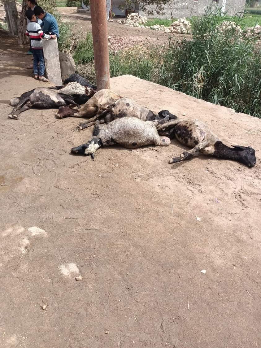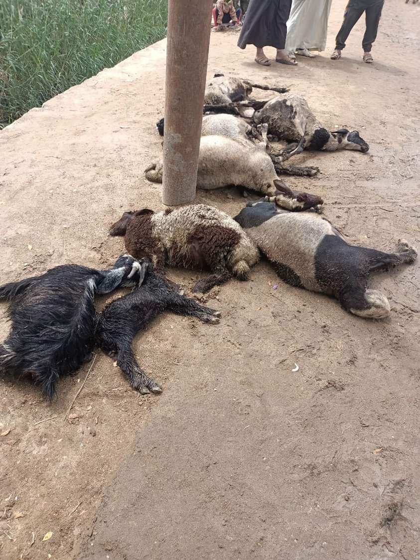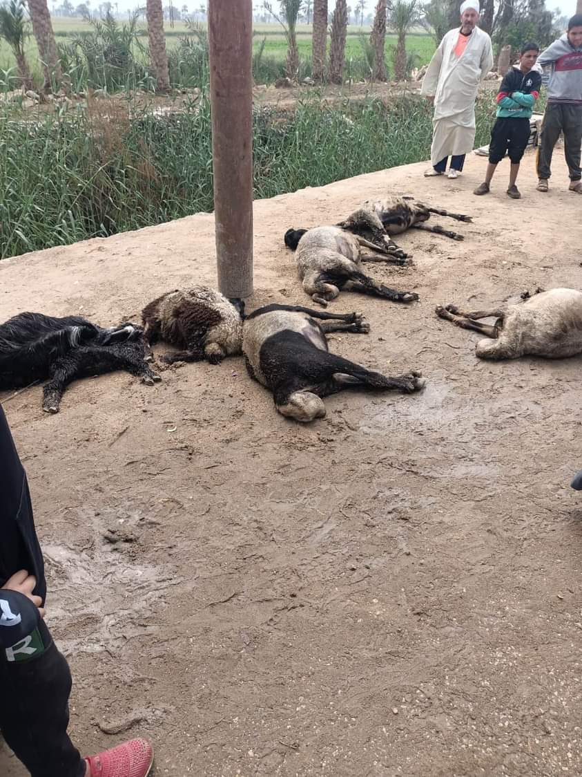 نفوق أغنام صعقها عمود إنارة بعد سقوط الأمطار في بني سويف