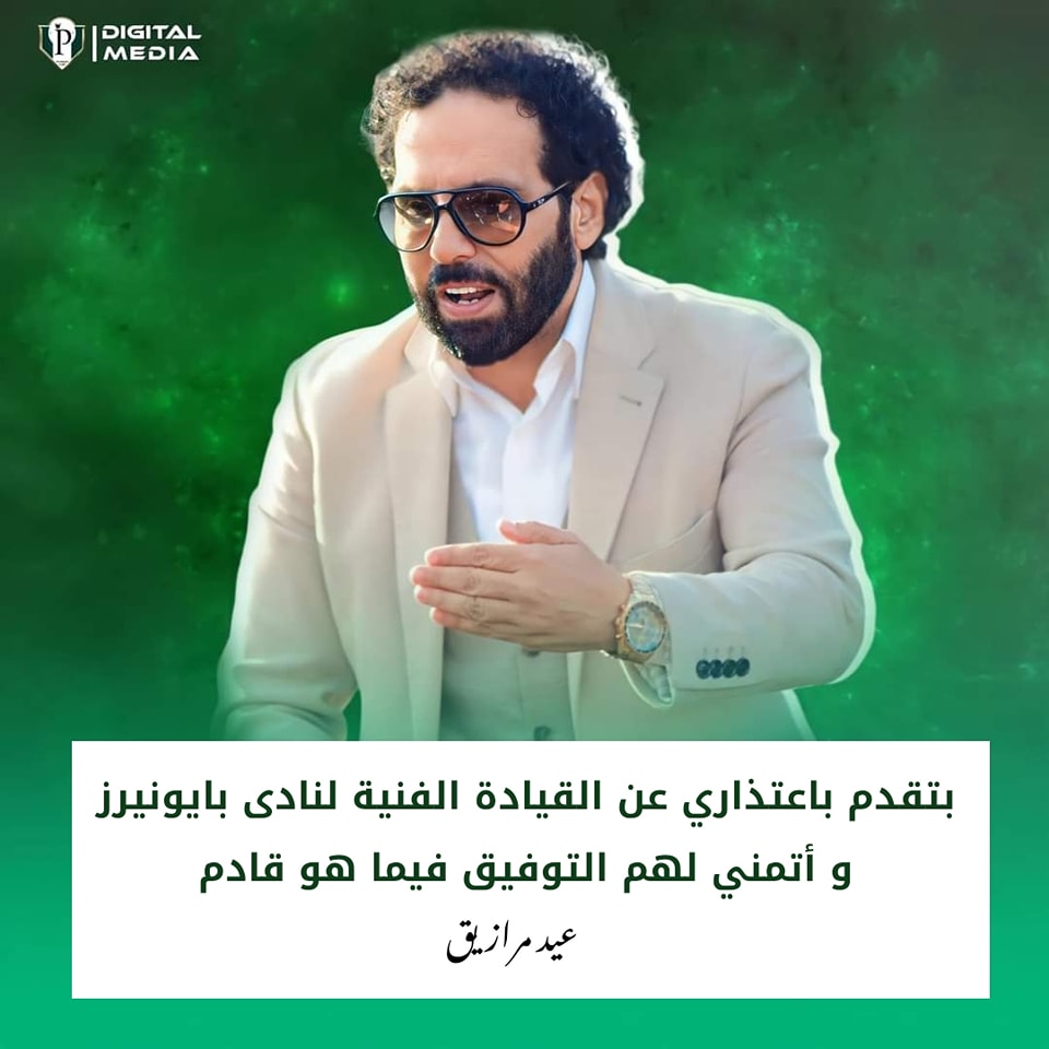 وأكد عيد مرازيق عبر صفحته علي موقع التواصل الاجتماعي، اعتذاره عن عدم الاستمرار في قيادة فريق بايونيرز.