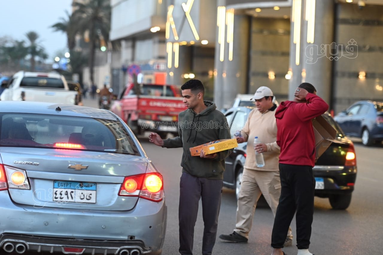 وأوقف الشباب السيارات بطريق كورنيش النيل، خلال اذان المغرب، لتوزيع زجاجات المياه والتمور، كما حرصوا على إفطار الباعة المتجولين والمشردين.