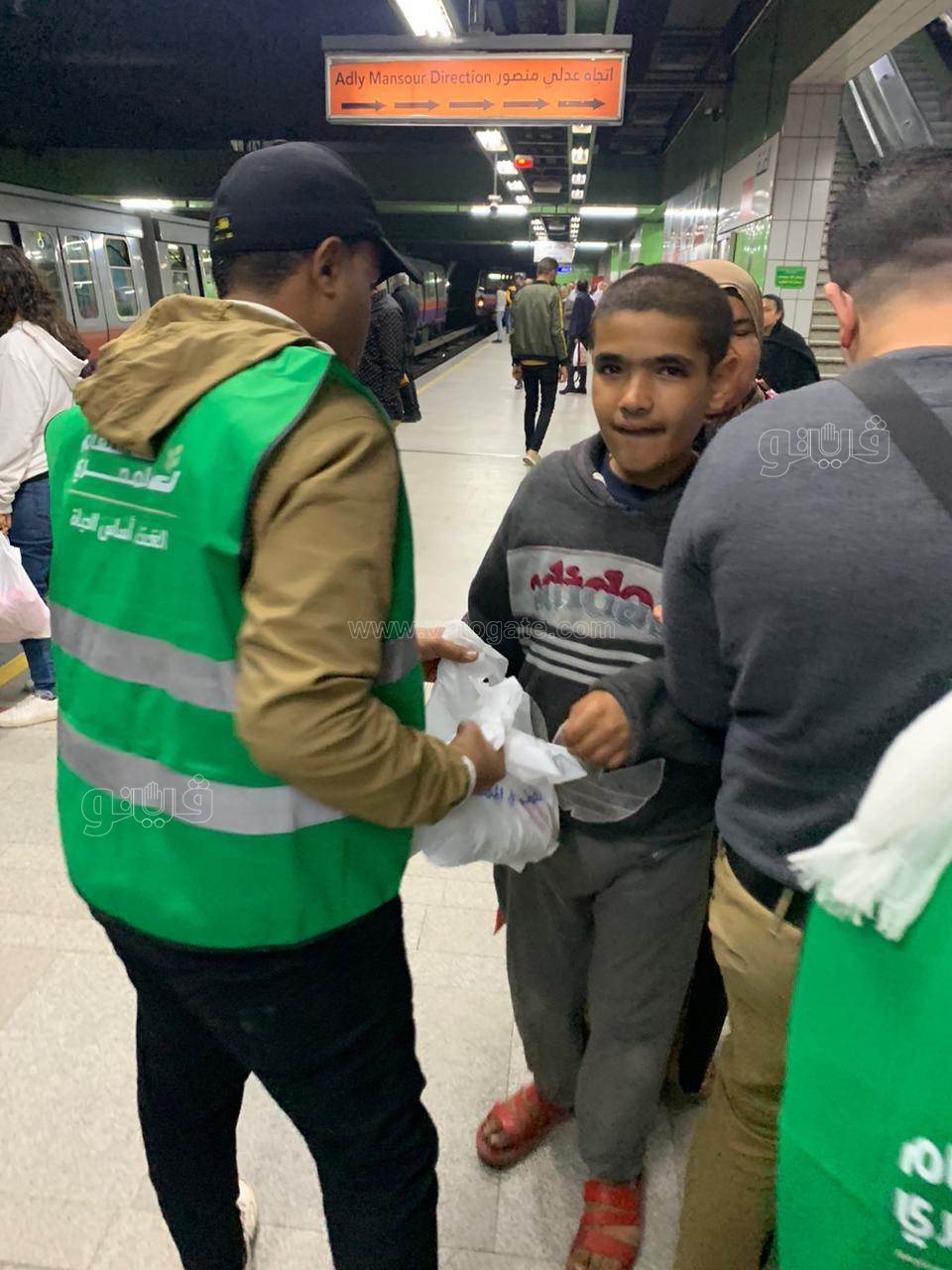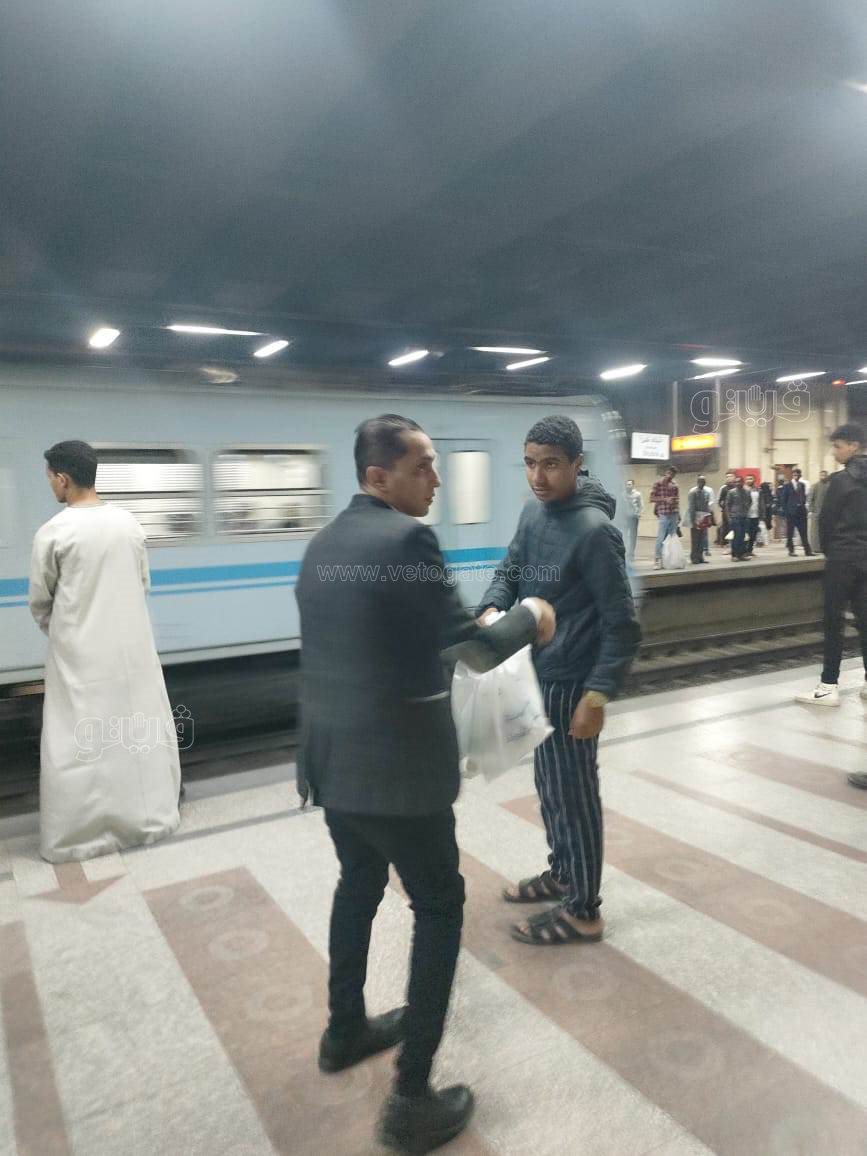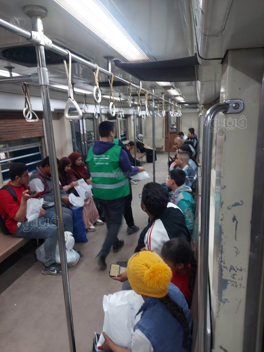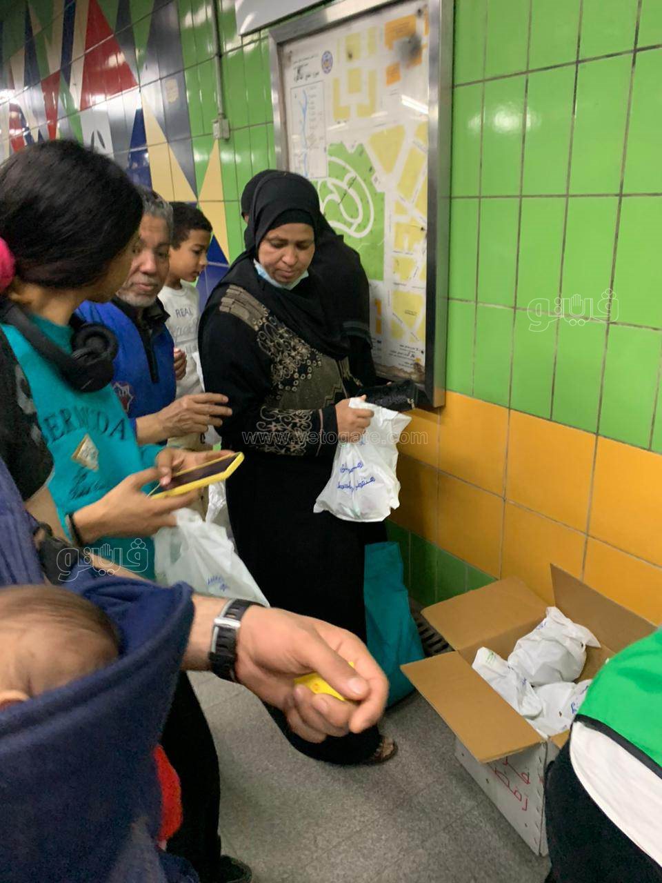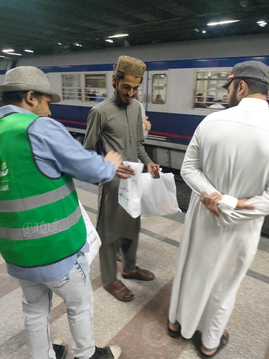 لحظة توزيع وجبات الإفطار علي الصائمين في المترو (صور)