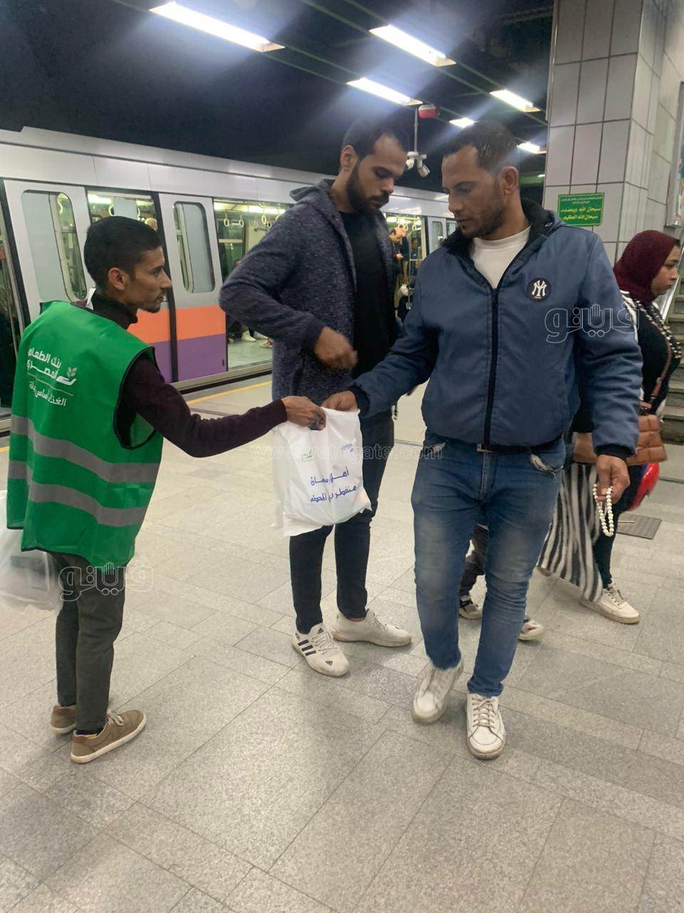 حيث قام متحدث مترو الأنفاق أحمد عبد الهادي بكير بالتنسيق مع فريق عمل بنك الطعام المصري لتوزيع ألف وجبة خفيفة لإفطار صائم يوميا على جميع الركاب المتواجدين بالمحطات وداخل القطارات وقت أذان المغرب وأوضح أن وجبة الإفطار الخفيفة تحتوى على زجاجة مياه وعصير وبسكويت.