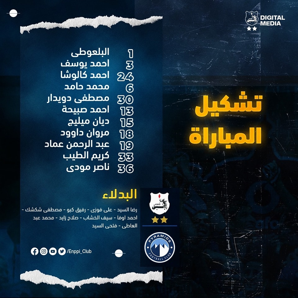 ويبدأ فريق إنبي المباراة بتشكيل مكون من