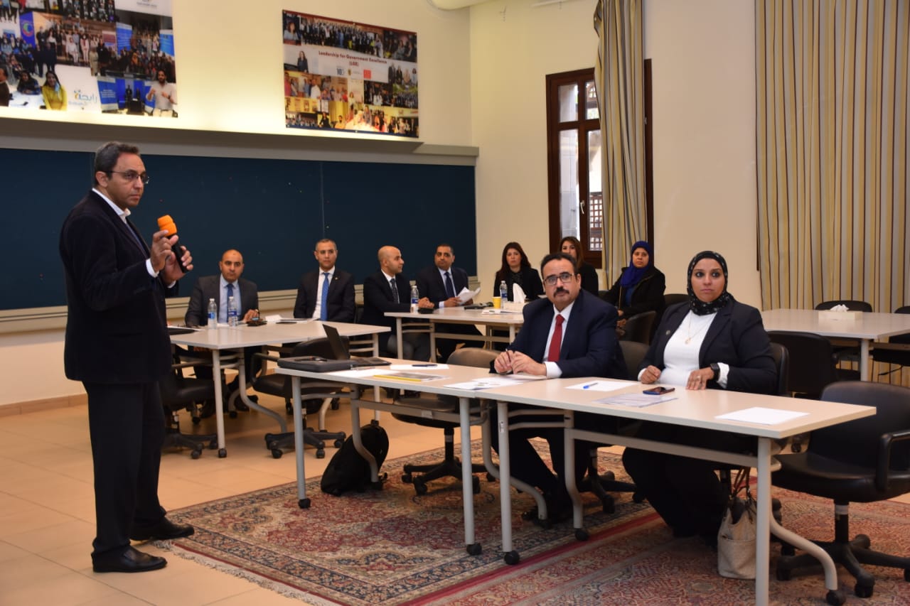 وشهد ختام المرحلة الأولى من البرنامج مناقشة أوراق السياسات المقدمة من مجموعات العمل المشكلة من المشاركين، وذلك في ضوء ما تم تناوله خلال البرنامج التدريبي في مرحلتيه من موضوعات تحليل السياسات العامة والإدارة الاستراتيجية في المجال الحكومي والقيادة والإصلاح المؤسسي.