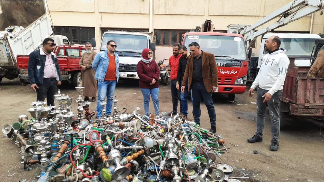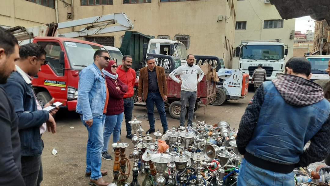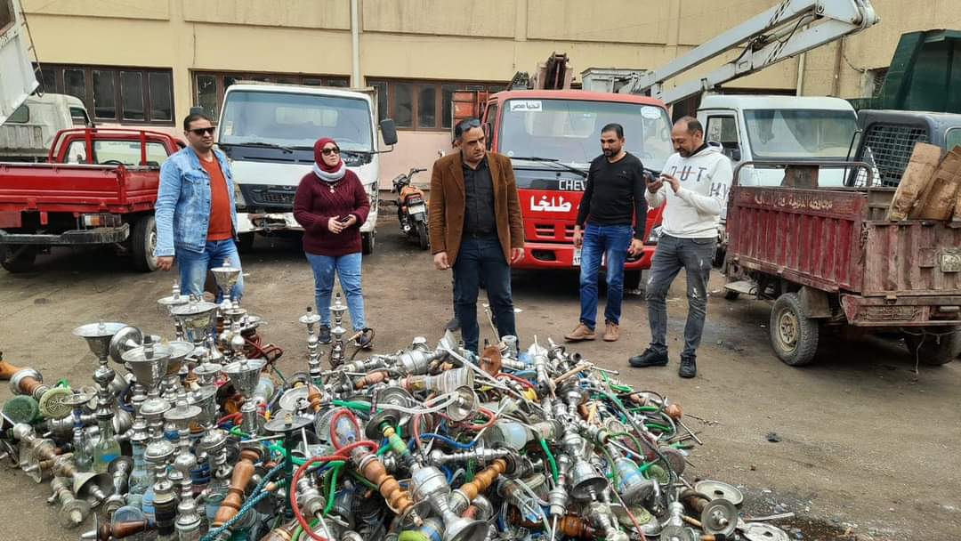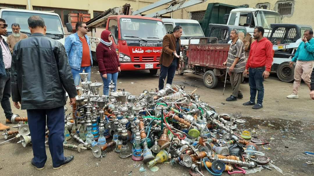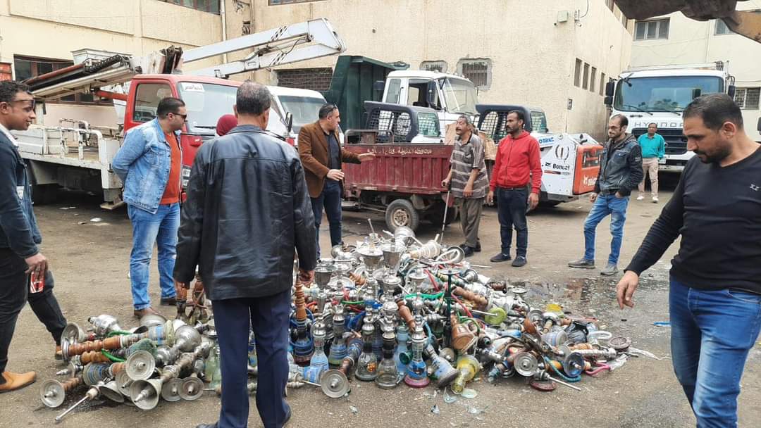 إعدام 400 شيشة في حملات على المقاهي بطلخا في الدقهلية