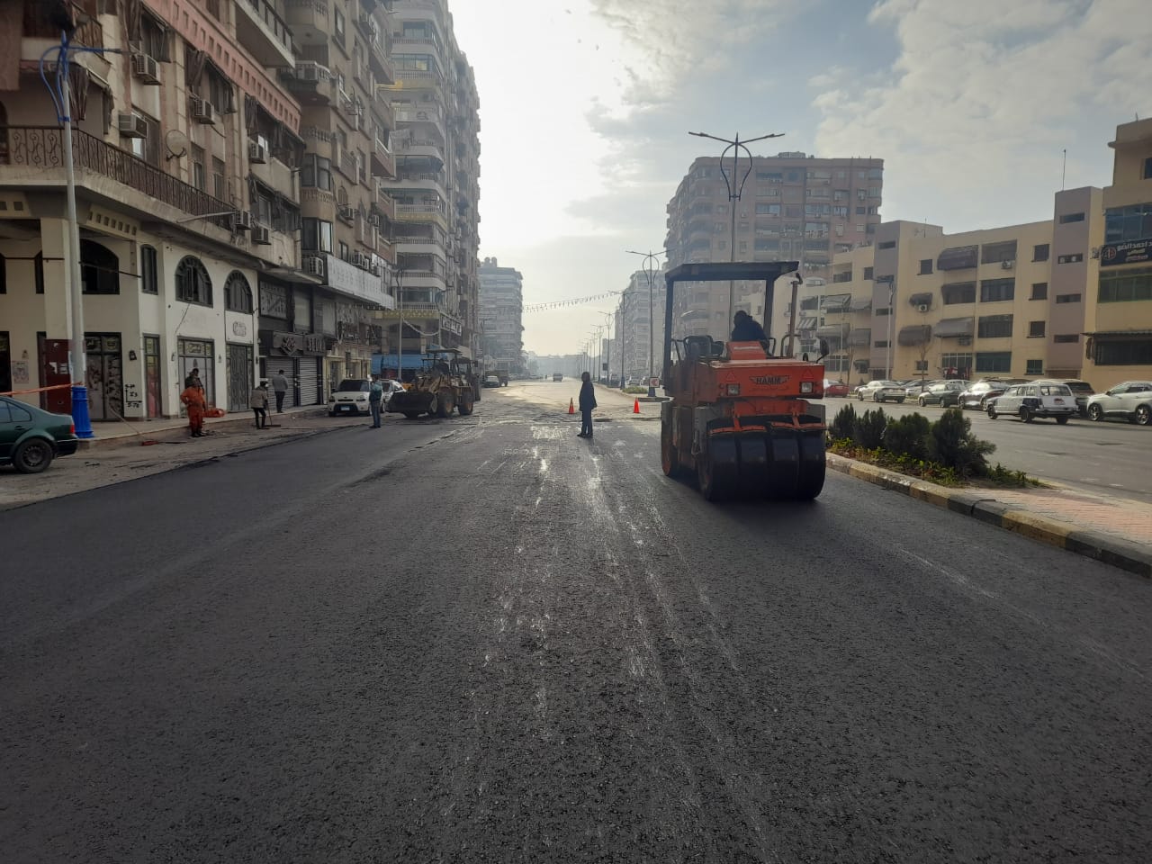 استمرار أعمال رصف ورفع كفاءة شارع 23 يوليو ببورسعيد (صور)