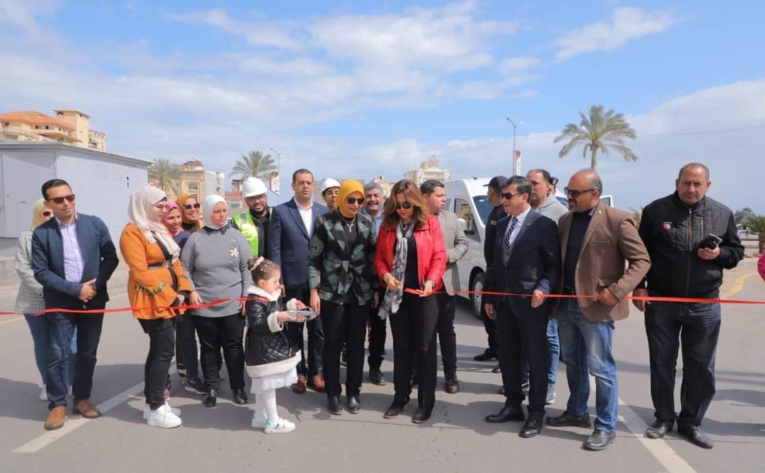 وجاء ذلك بحضور اللواء محمد همام سكرتير عام المحافظة، وأشارت " الدكتورة منال عوض " إلى أنه تم تنفيذ مشروع متكامل لتطوير الطريق، حيث تضمنت أعمال توسعة للطريق لتصبح الحارة الواحدة بعرض ١٢ مترا ورفع كفاءة الجزيرة الوسطى وتشجيرها وإعادة تخطيط ميدان الجمل وانشاء سارى علم به،علاوة على إحلال اعمدة الانارة وإنشاء ساحات لانتظار السيارات ورصفها بالبلاطات الخرسانية وأرصفة جانبية ببلاطات الانترلوك،علاوة على إنشاء شبكة لصرف مياه الأمطار بـ ١٧ بالوعة، إلى جانب ما تم تنفيذه من أعمال إحلال لشبكات المرافق بالمنطقة واستبدال شبكات الكهرباء الهوائية بكابلات أرضية وكذلك تغطية عدد من المناطق الغير مخدومة بالصرف الصحى، وأيضًا تعديل أماكن الدورانات بما يتناسب مع الدراسات المرورية ومطالب المواطنين، وكذلك رصف حارتي الطريق بالأسفلت وتخطيطه.