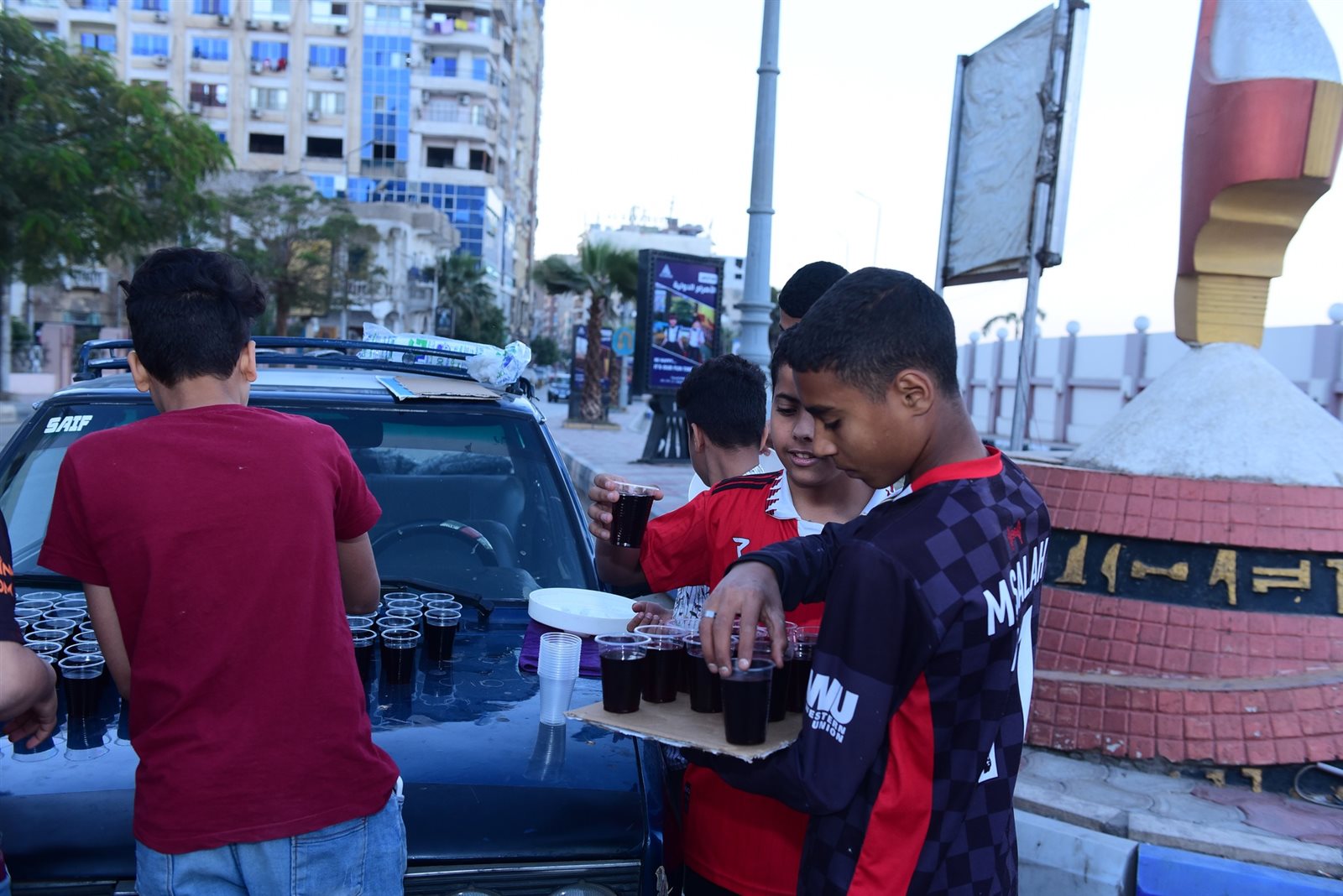 شباب وأطفال يوزعون التمر والعصائر على الصائمين في شوارع سوهاج (صور)