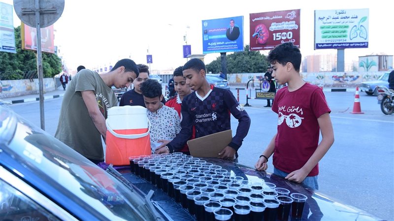 شباب وأطفال يوزعون التمر والعصائر على الصائمين في شوارع سوهاج (صور)