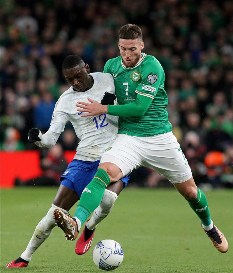 في آخر 10 دقائق، شارك جول كوندي وتشواميني مكان بافارد ورابيو، لتعزيز صلابة الوسط والدفاع أمام الضغط الأيرلندي.