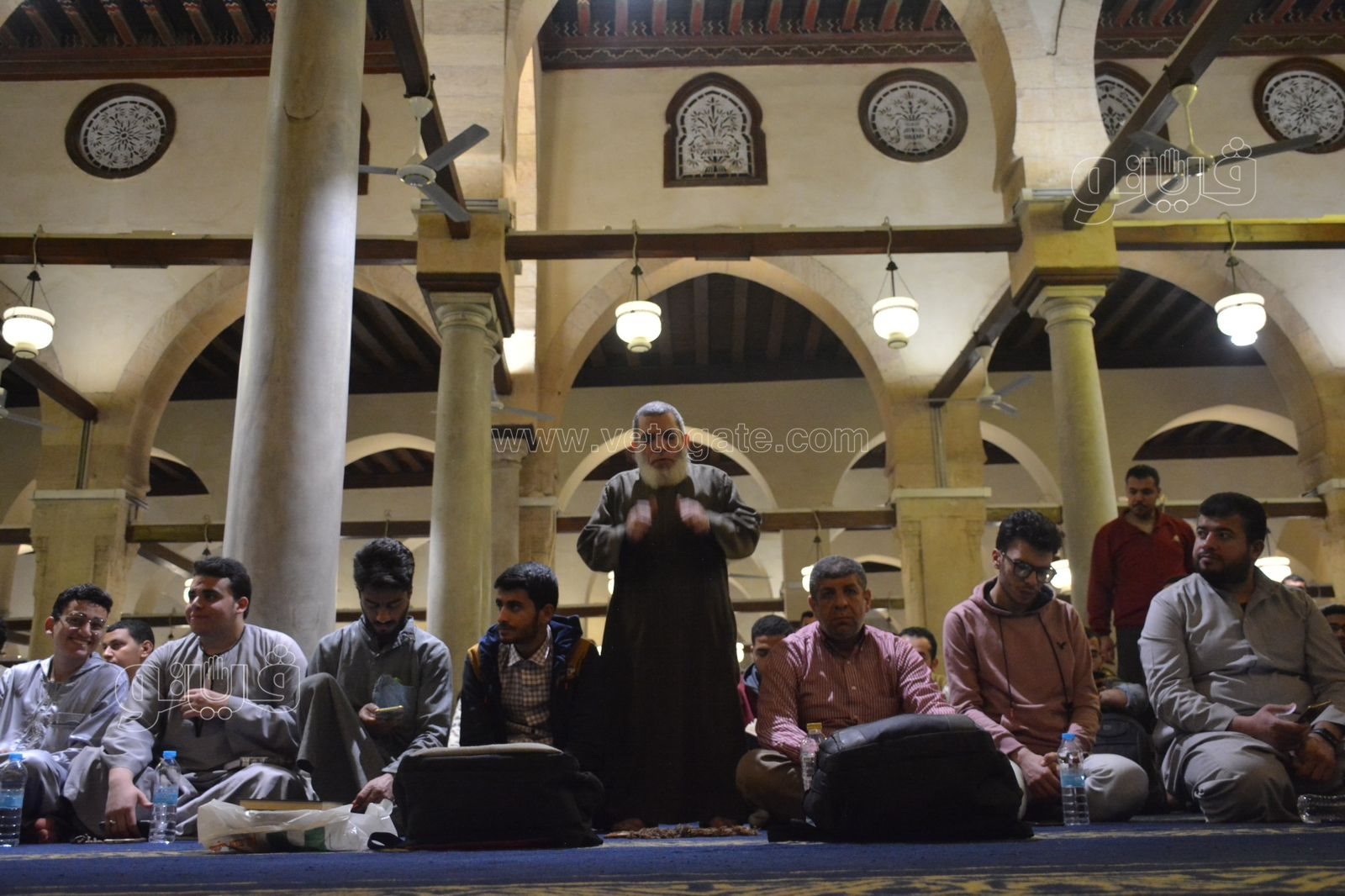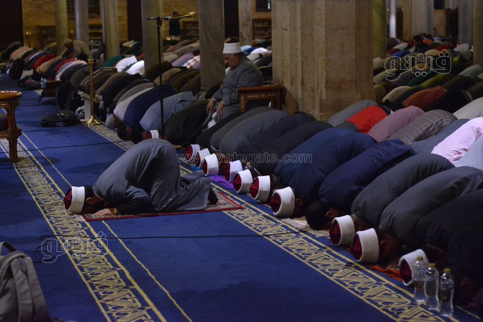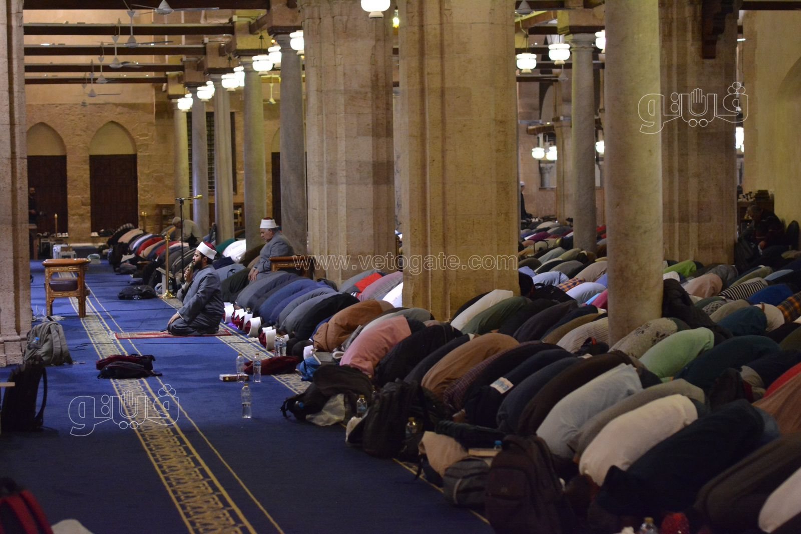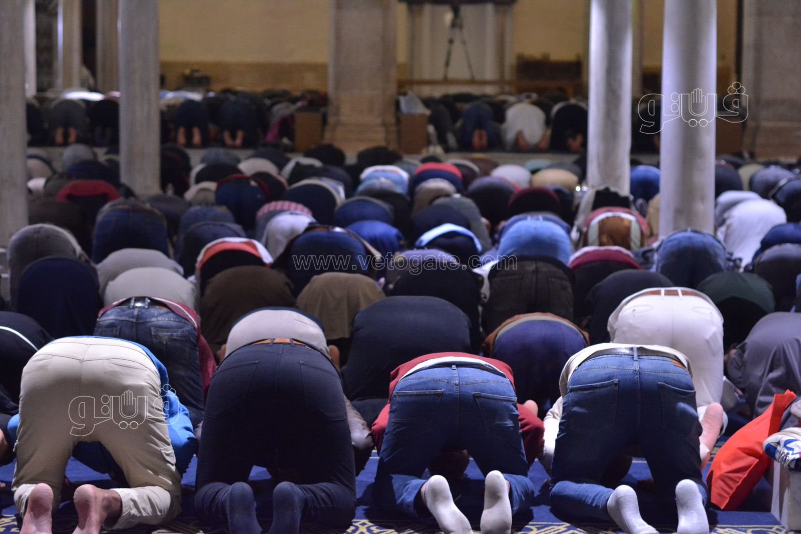 علماء الأزهر وآلاف المصلين يؤدون العشاء والتراويح في أروقة الأزهر العتيقة (صور)
