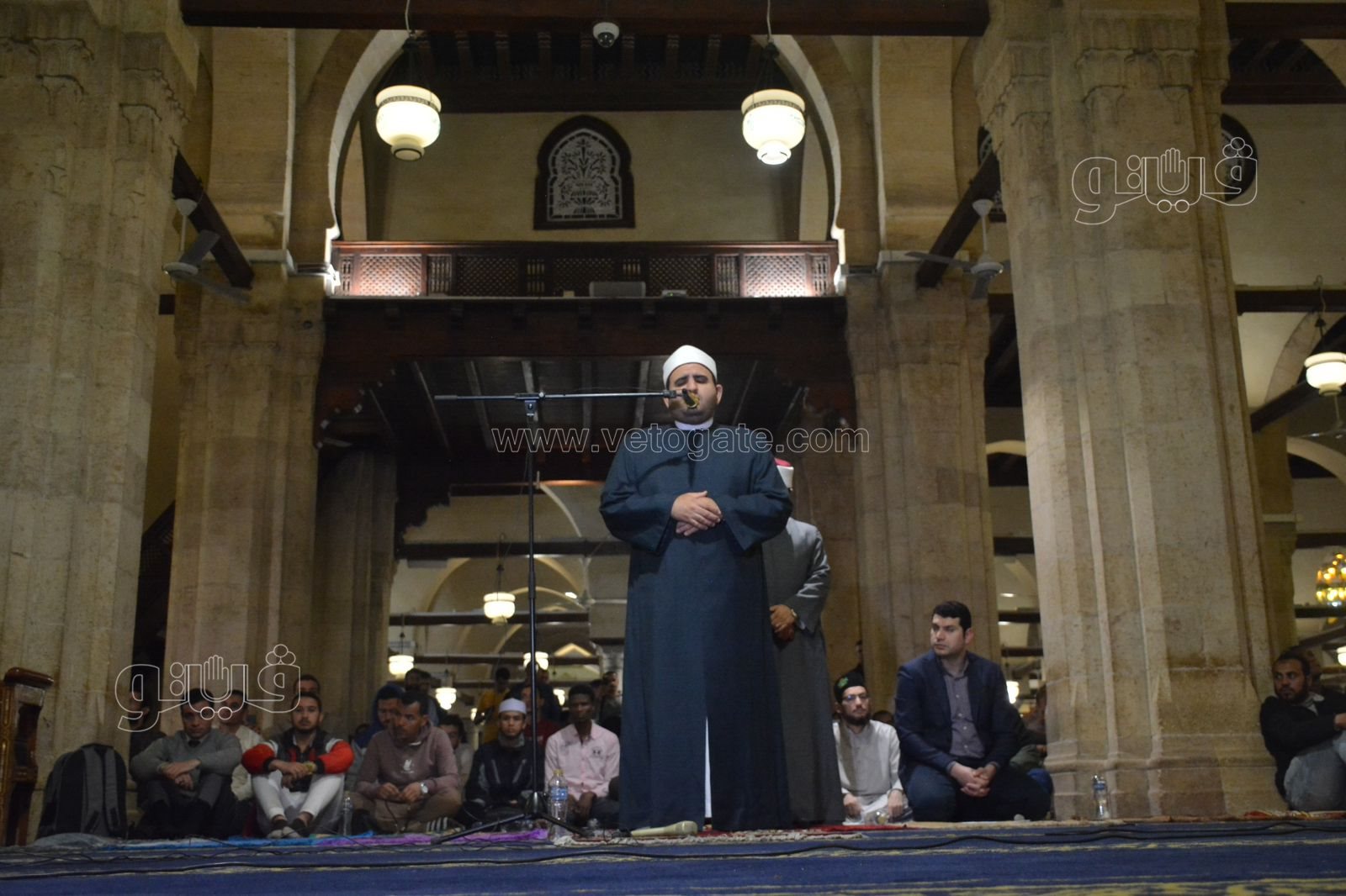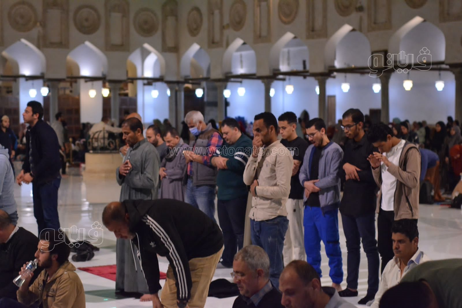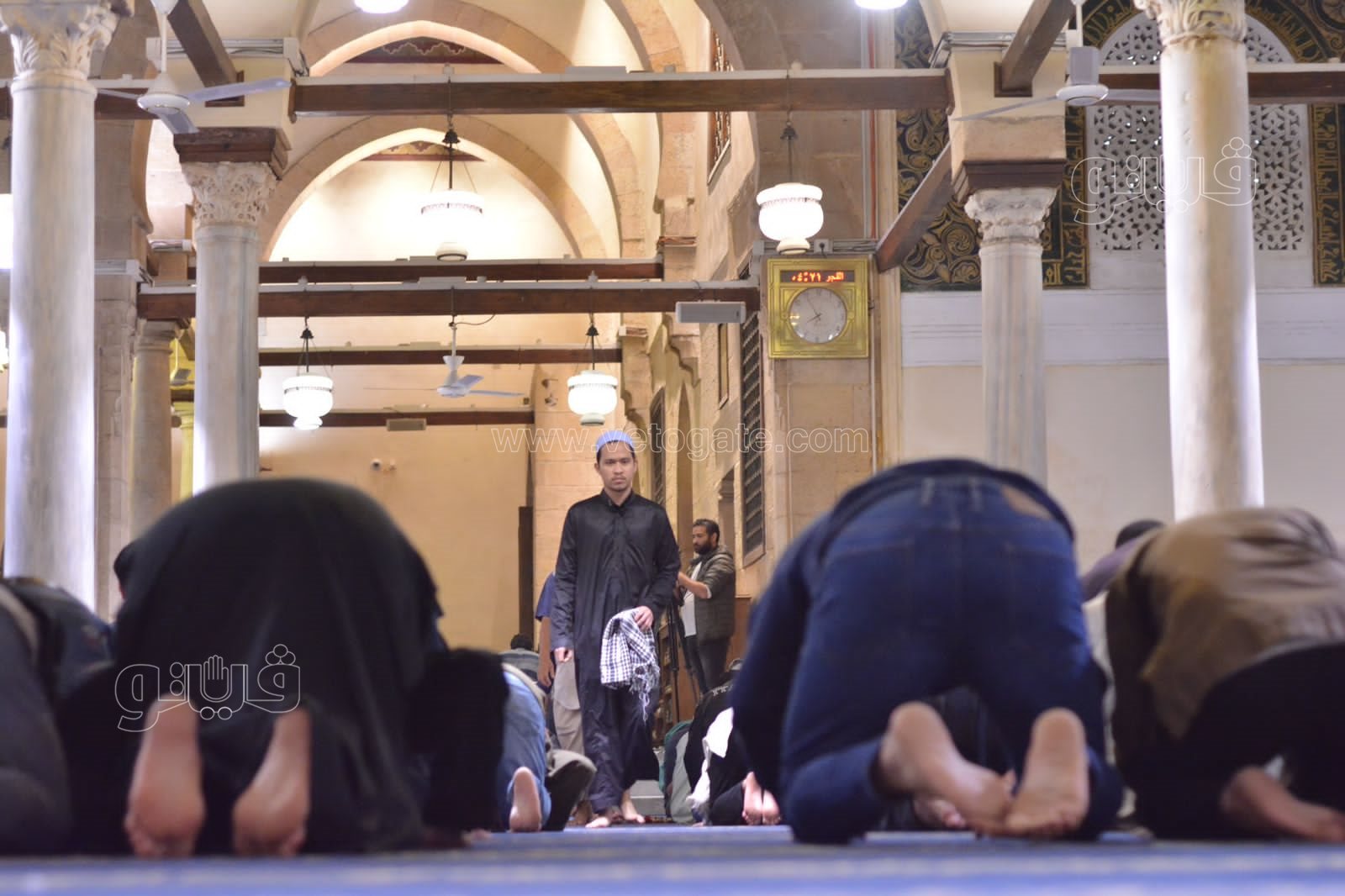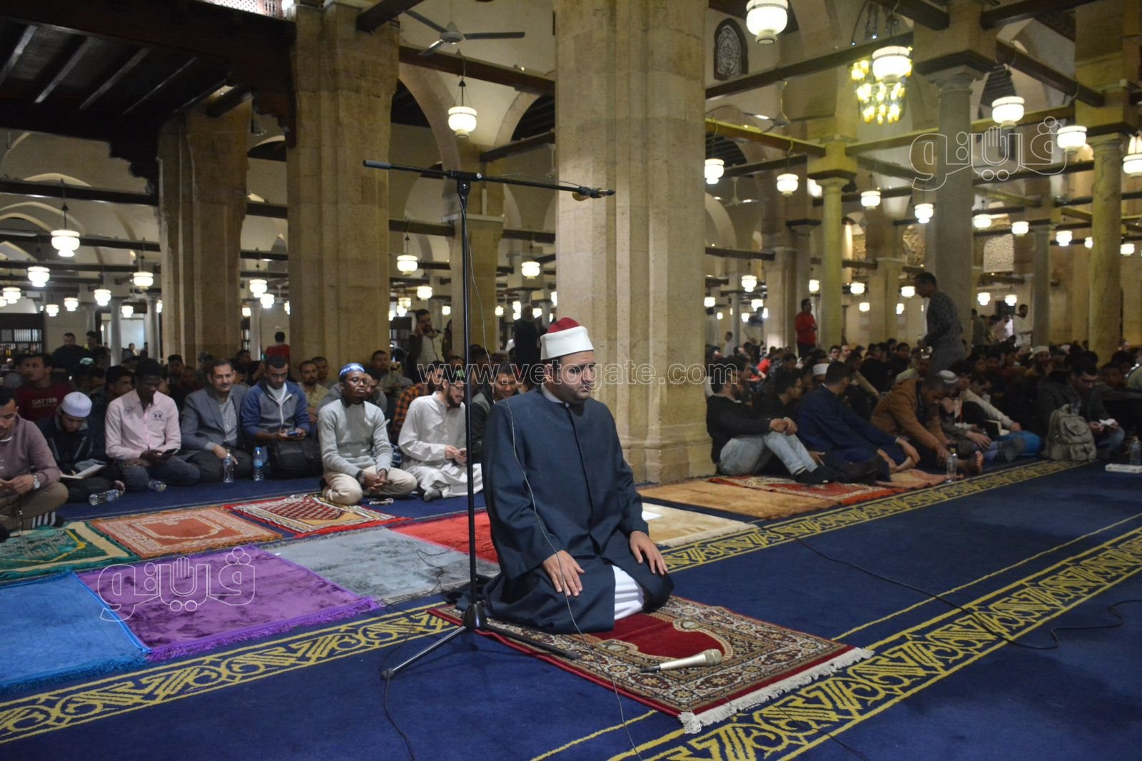 علماء الأزهر وآلاف المصلين يؤدون العشاء والتراويح في أروقة الأزهر العتيقة (صور)