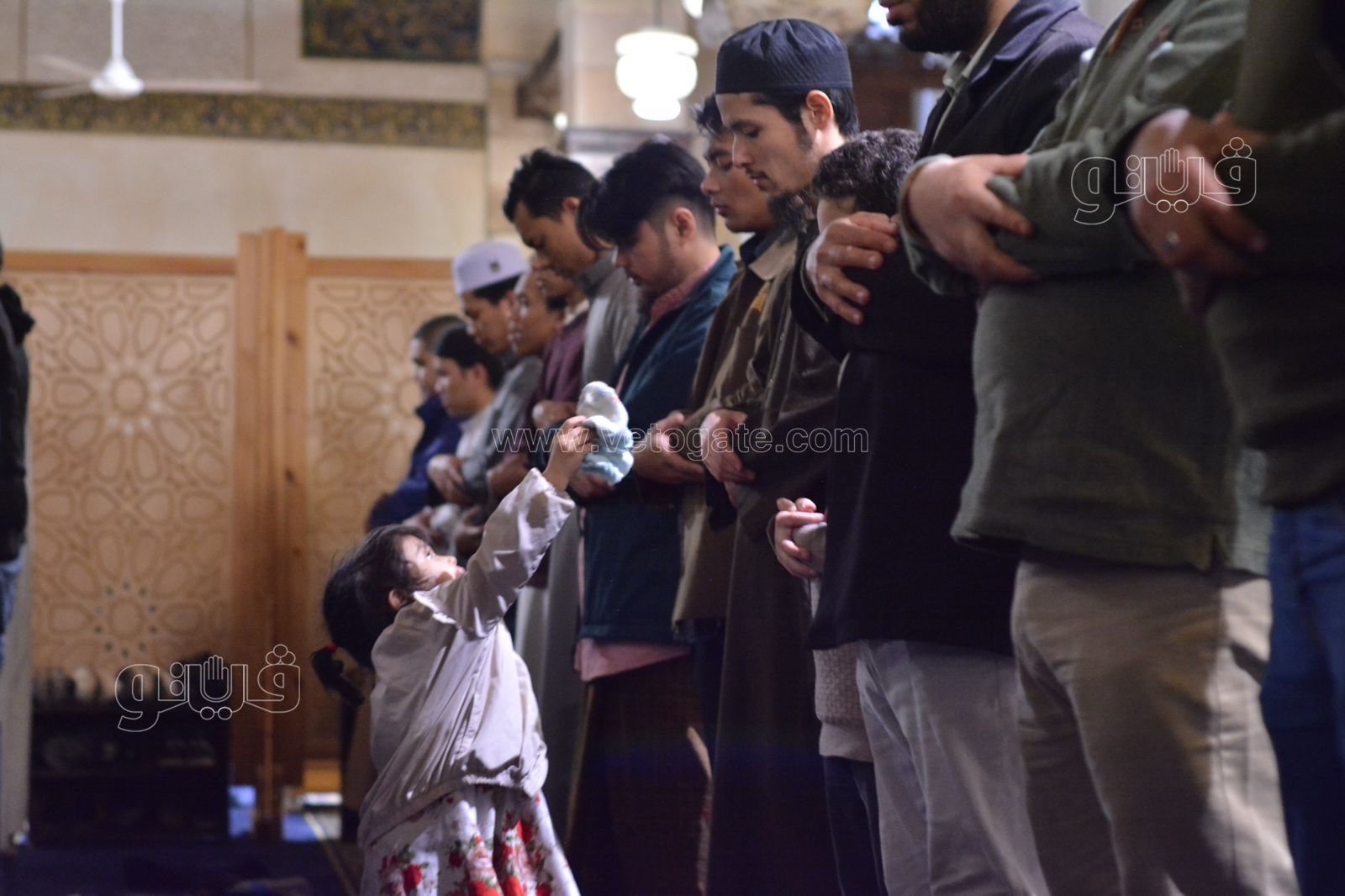 وتقدم المصلين الدكتور محمد الضويني، وكيل الأزهر الشريف، والدكتور أحمد معبد، عضو هيئة كبار العلماء، والشيخ حسن عبد النبي، وكيل لجنة مراجعة المصحف الشريف، والدكتور هاني عودة، مدير عام الجامع الأزهر، ونخبة من علماء وقيادات الأزهر، وأمَّ المصلين الدكتور أسامة هاشم الحديدي، والشيخ محمد عليوة النجار، والشيخ عمرو فاروق سعودي، والشيخ أحمد سعد العجمي، وأقيمت صلاة العشاء بآيات من سورة النساء برواية حفص عن عاصم، كما أقيمت صلاة التراويح بآيات من سورتي النساء والمائدة برواية قالون عن نافع المدني، وقراءة ابن كثير المكي.