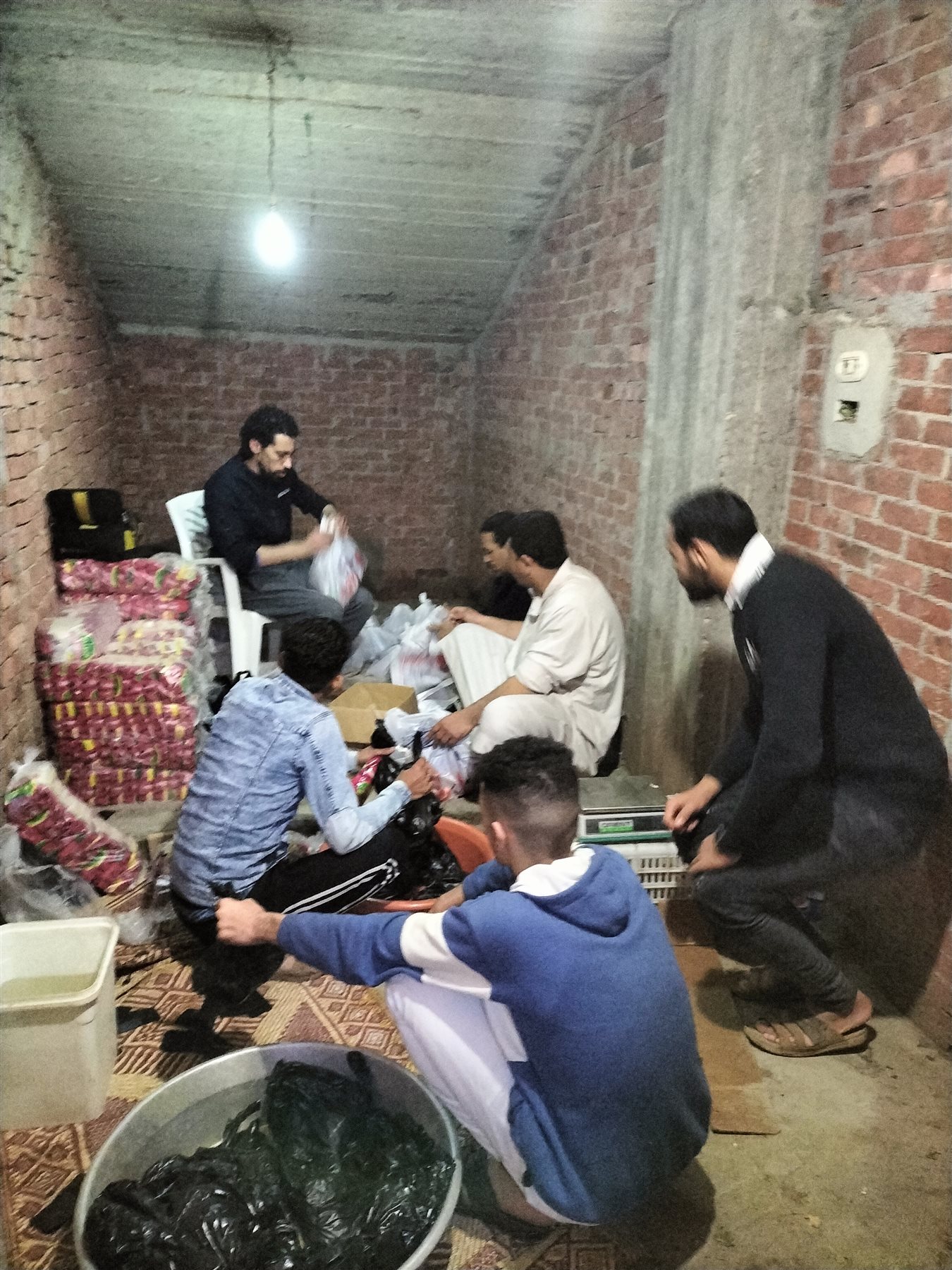 فكر شباب الخير فى القرية أن يوزعوا الوجبات على المستحقين دون إحراج ودون أن يراهم أحد فلجأوا لفركو توزيع اللحوم أو الأسماك والأرز وباقى لوازم الوجبة دون طهيها فى الليل وتقوم الأسر بطهيها فى اليوم التالى.