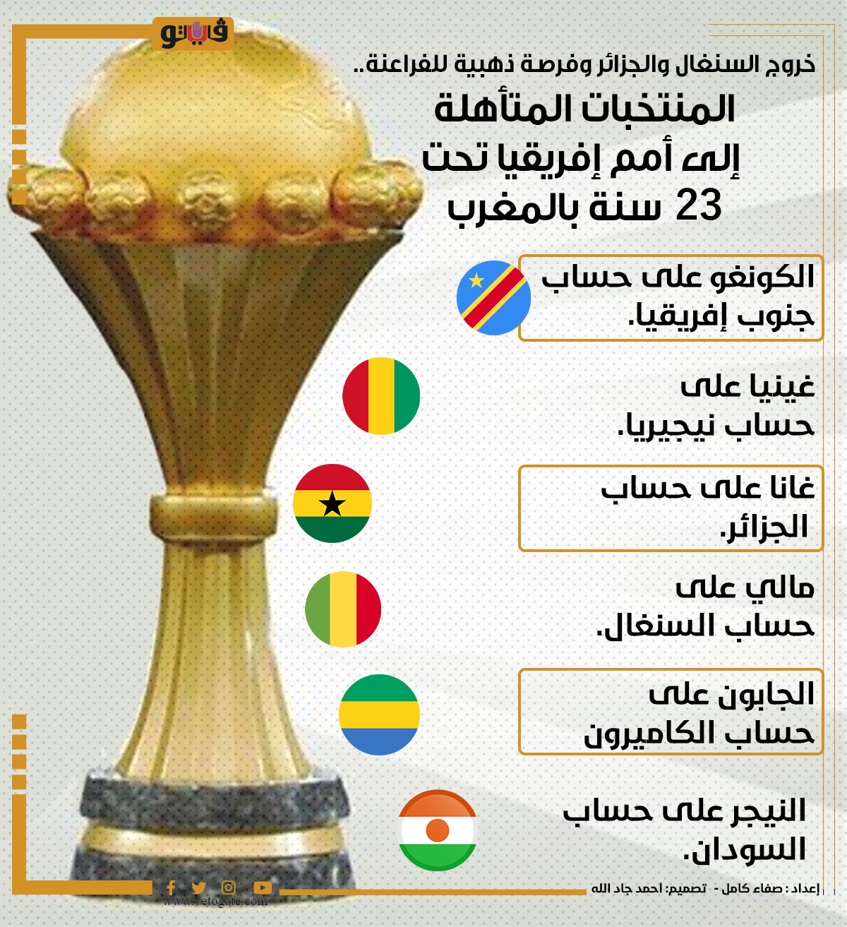 خروج السنغال والجزائر وفرصة ذهبية للفراعنة.. المنتخبات المتأهلة إلى أمم إفريقيا تحت 23 سنة بالمغرب (إنفوجراف)