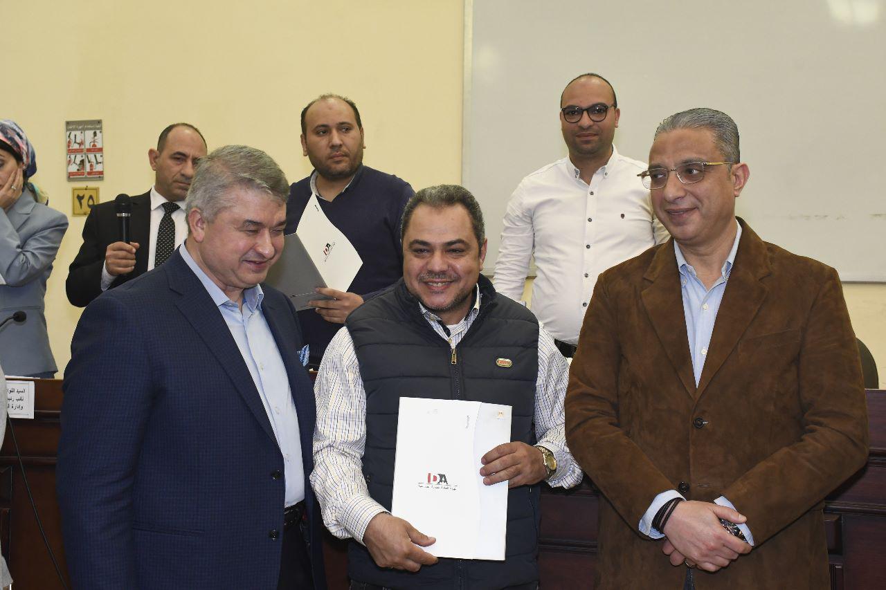 سلم الدكتور أحمد الأنصاري محافظ الفيوم، والمهندس محمد عبدالكريم رئيس الهيئة العامة للتنمية الصناعية، يرافقهما الدكتور محمد عماد نائب المحافظ، عقود 113 وحدة صناعية هي قوام المرحلة الأولى للمجمع الصناعي بمدينة الفيوم الجديدة الذي يضم 576 وحدة، خلال الحفل الذي الذى تم تنظيمه بقاعة الاجتماعات بمقر جهاز تنمية مدينة الفيوم الجديدة، ثم تفقدا عددًا من الوحدات بالمجمع الصناعي على أرض الواقع بالمدينة نفسها، استمرارًا لاحتفالات محافظة الفيوم بعيدها القومي.
