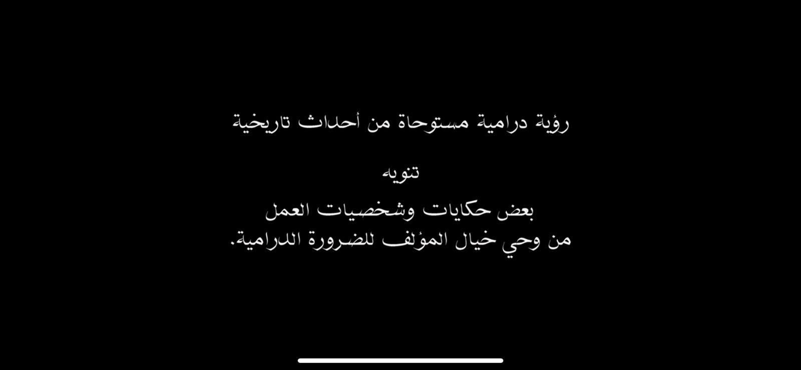 وجاء في التنويه الذي كتب عقب تتر البداية وقبل بدء الحلقة: "رؤية درامية مستوحاة من أحداث تاريخية.. تنويه بعض حكايات وشخصيات العمل من وحي خيال المؤلف للضرورة الدرامية".