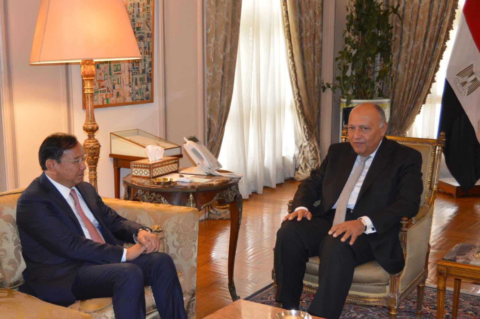 وعقد شكرى جلسة مباحثات ثنائية مع نائب رئيس الوزراء ووزير الخارجية والتعاون الدولي بمملكة كمبوديا "براك سوكون".