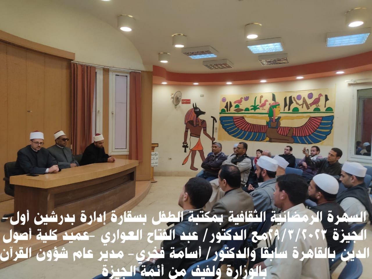 أقيمت فعاليات برنامج سهرة رمضانية بالتعاون مع وزارة الثقافة ممثلة في الهيئة العامة لقصور الثقافة للوصول بثقافة الإسلام الصحيحة إلى جميع شرائح المجتمع وأطيافه.