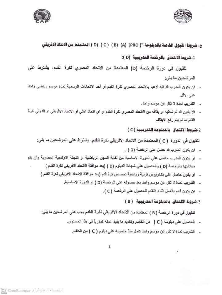 والأوراق المطلوبة طبقا لتعليمات الاتحاد المصري لكرة القدم كالتالي