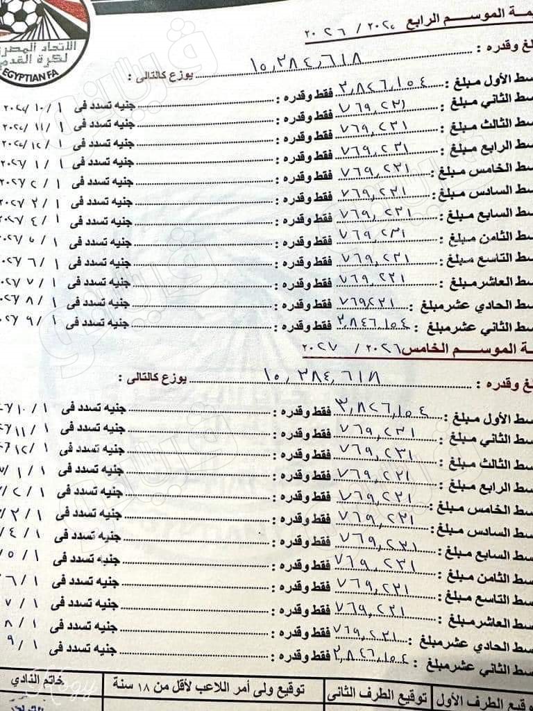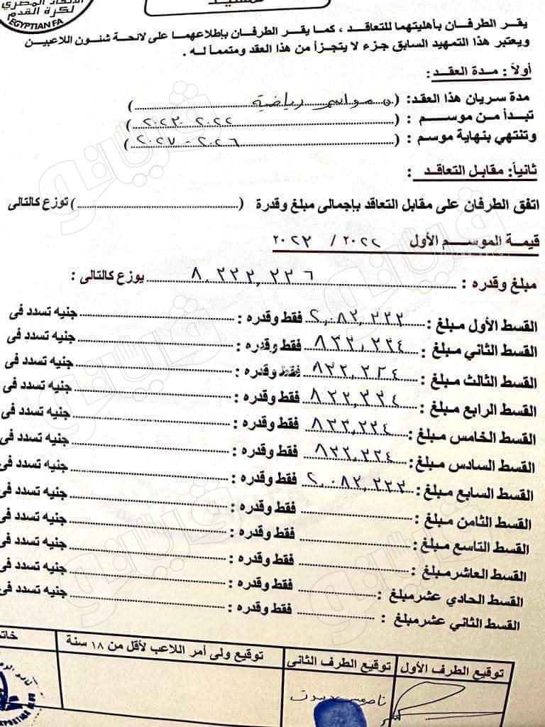 ويأتي عقد ناصر منسي مع الزمالك كالتالي: