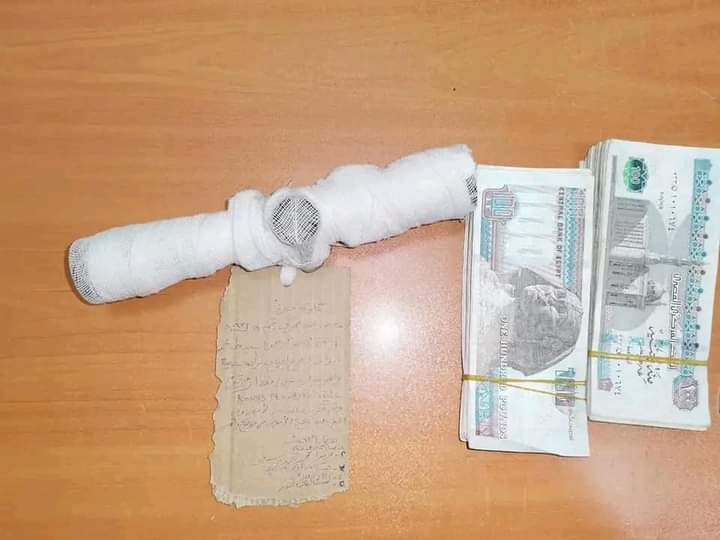 وبالعرض علي ممدوح عبدالشافي مقلد مدير الجمارك قام بتشكيل لجنة من حسام الدين صالح وهشام عبدالمؤمن مامور مكافحة التهرب وراندا محمد لتفتيش حقائبه فتبين وجود منظار (تليسكوب) يمكن تركيبه على الأسلحة و٢٢ ألف جنيه مصري مخبأة بين طيات ملابسه يصعب الوصول اليهم.