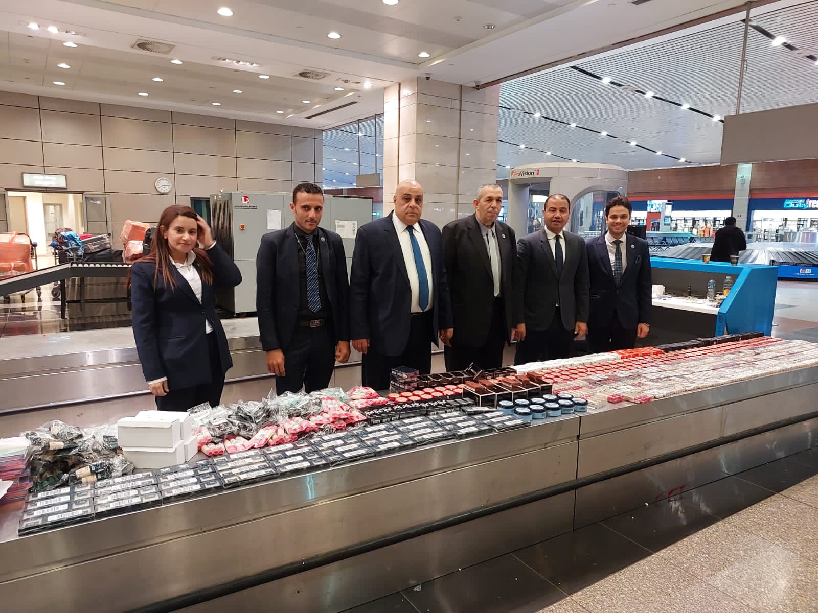 أحبطت سلطات جمارك مطار القاهرة الدولي محاولة راكب مصري تهريب كمية كبيرة من مستحضرات التجميل غالية الثمن.