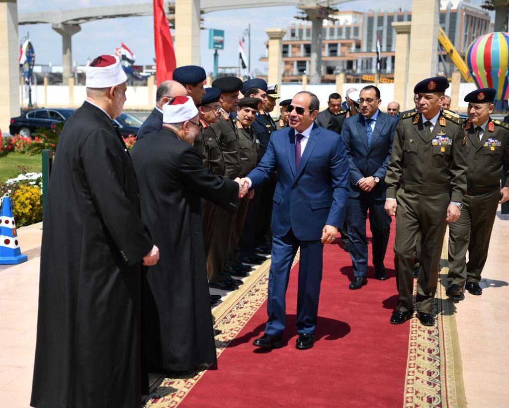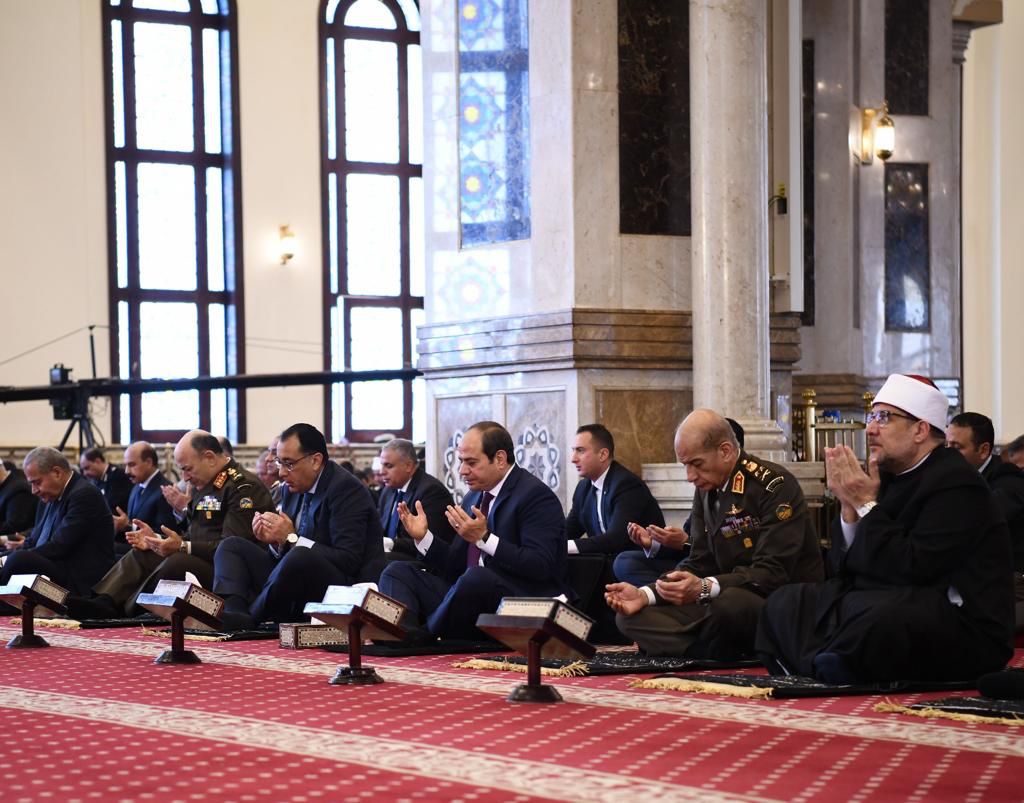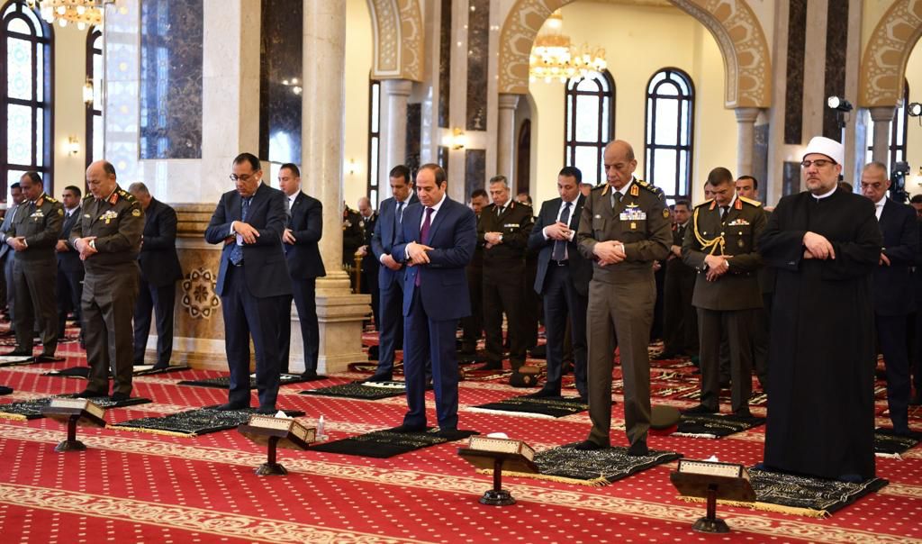 وقد أدى الصلاة مع الرئيس السيسي كل من الدكتور مصطفى مدبولي رئيس مجلس الوزراء، والفريق أول محمد زكي القائد العام للقوات المسلحة وزير الدفاع والإنتاج الحربي والفريق أسامة عسكر رئيس أركان حرب القوات المسلحة وقادة الأفرع الرئيسية وكبار قادة القوات المسلحة وعددا من الضباط وضباط الصف والجنود.