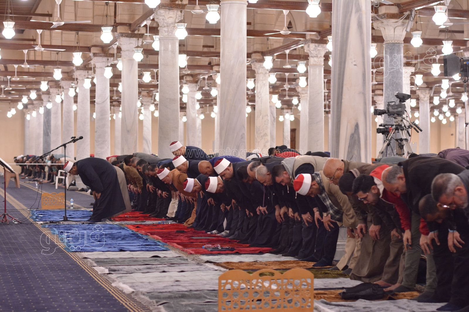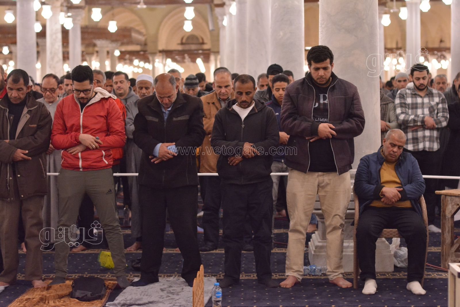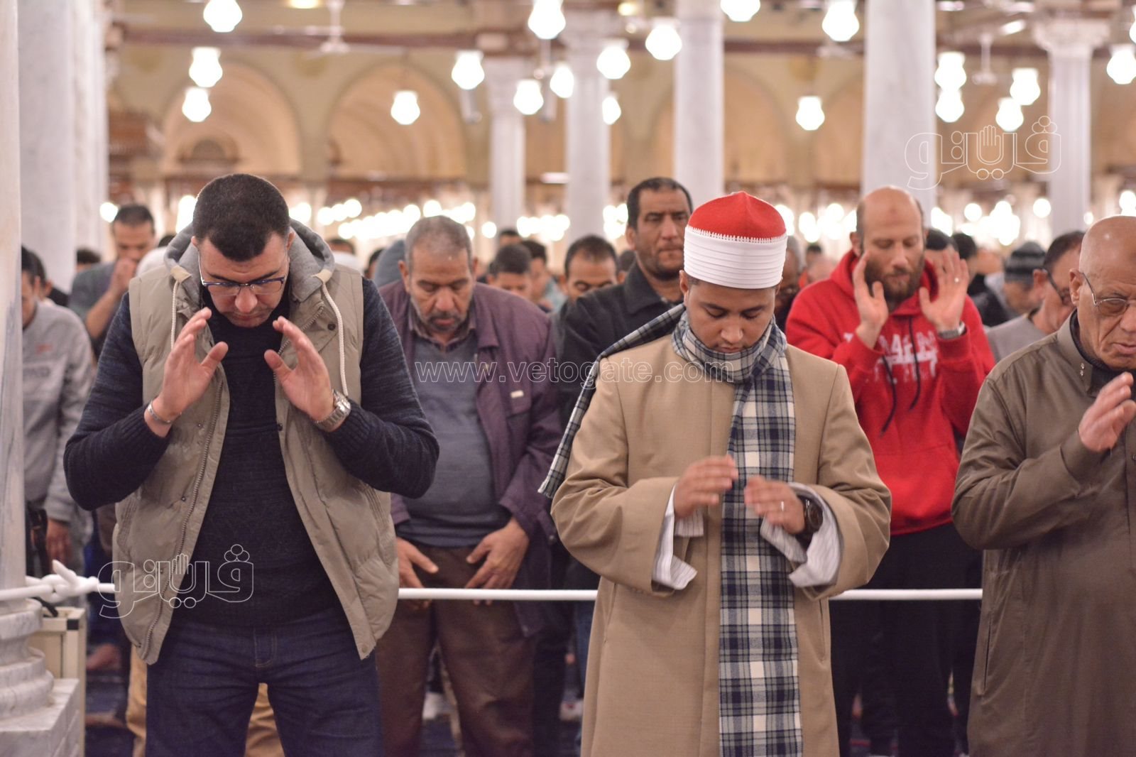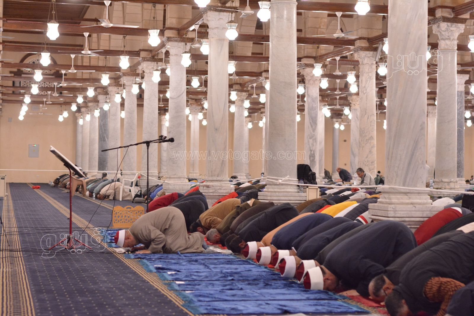مئات المصلين يؤدون التراويح من جامع عمرو بن العاص (صور)