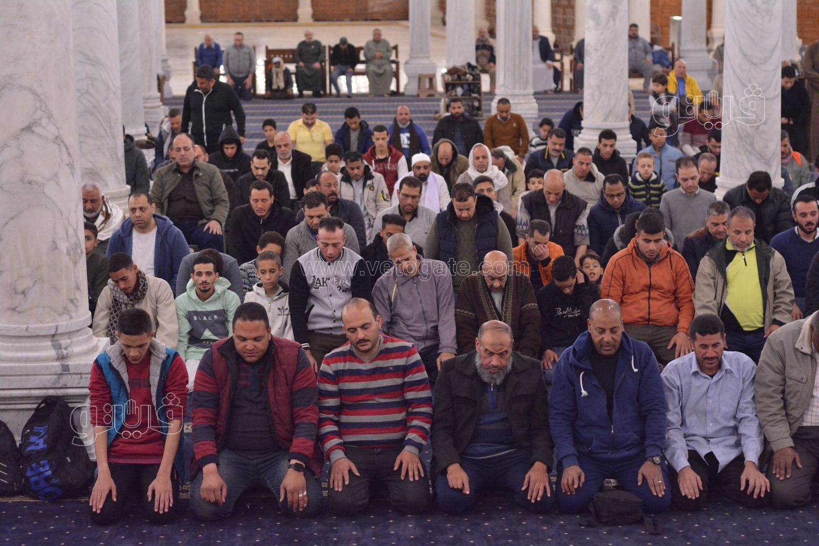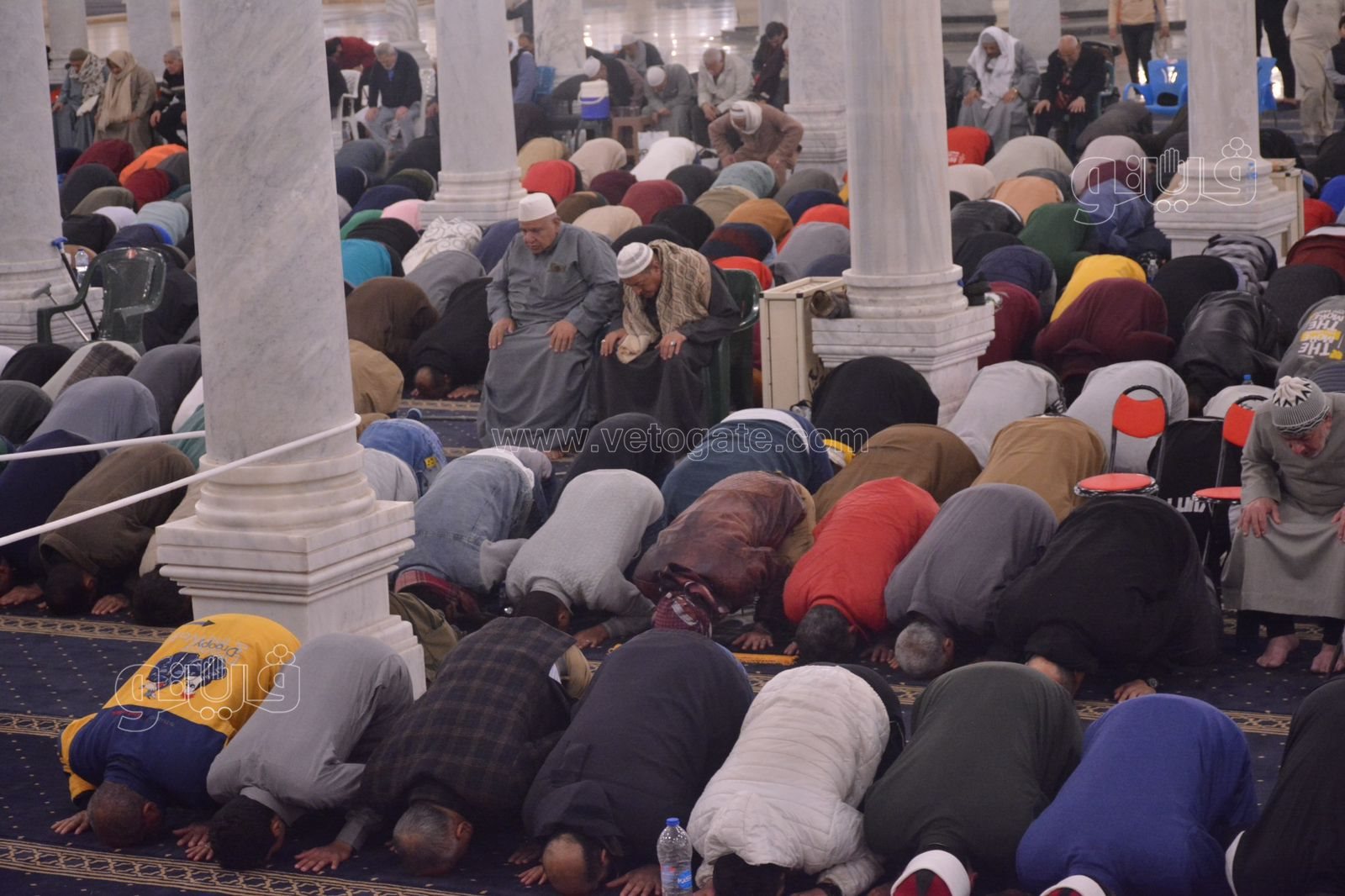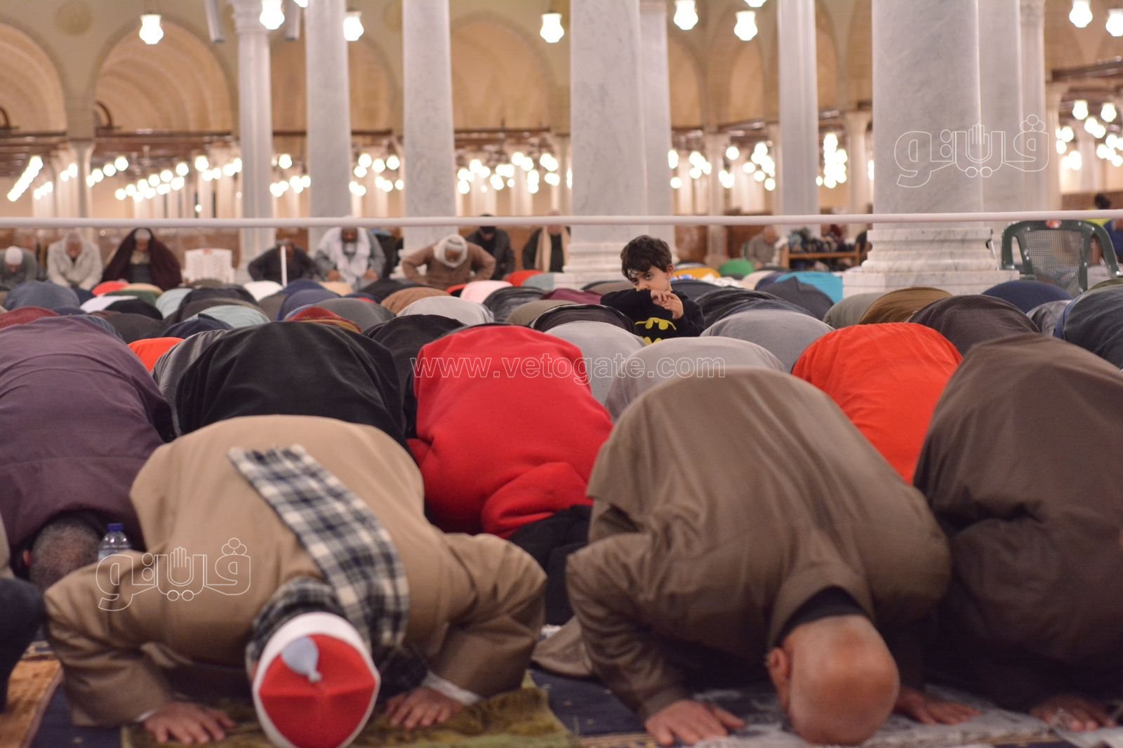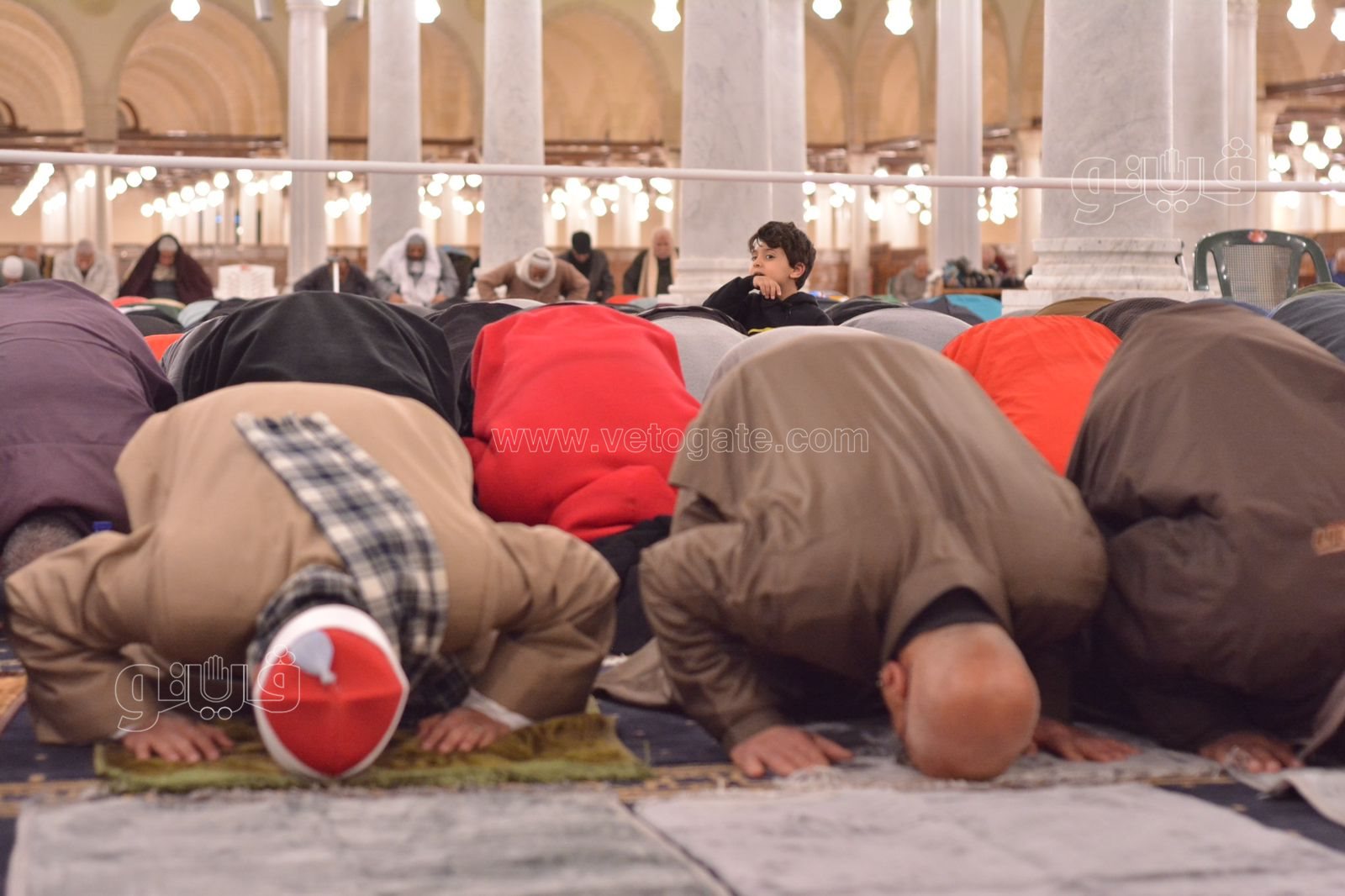 مئات المصلين يؤدون التراويح من جامع عمرو بن العاص (صور)