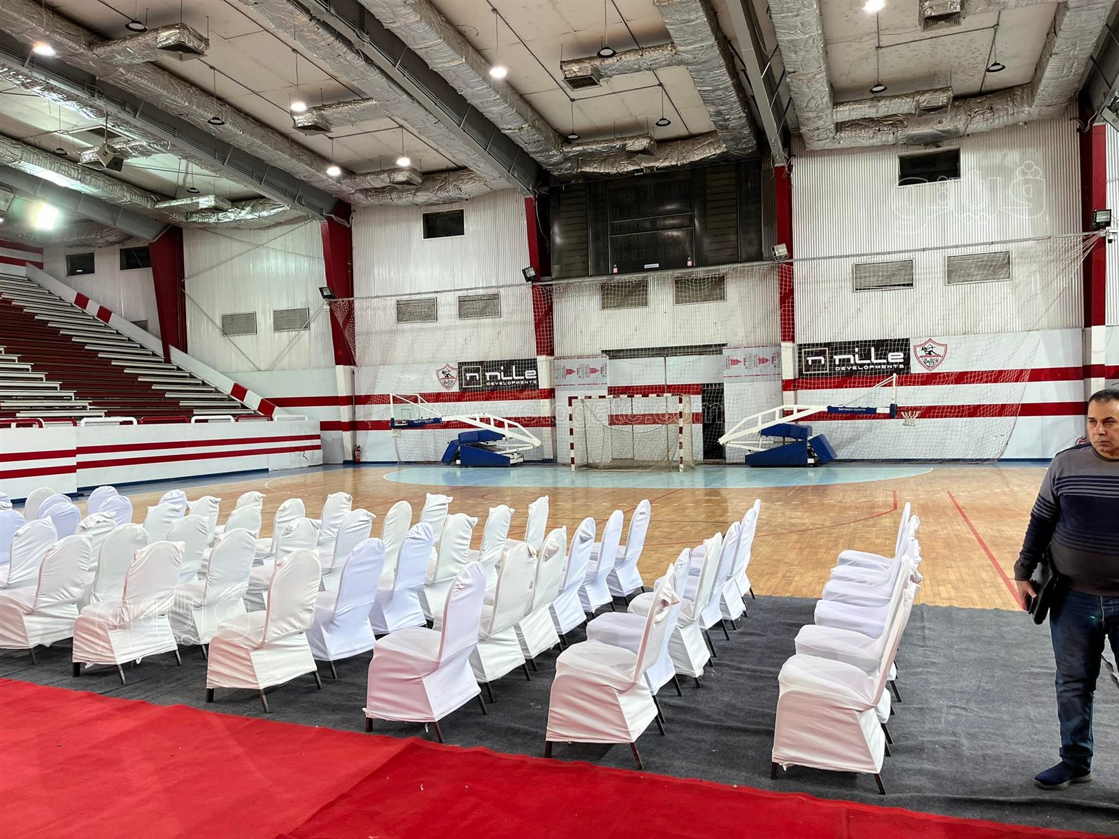 تجهيزات مؤتمر مرتضى منصور للإعلان عن مدرب الزمالك الجديد (صور)