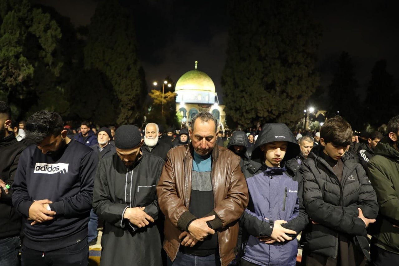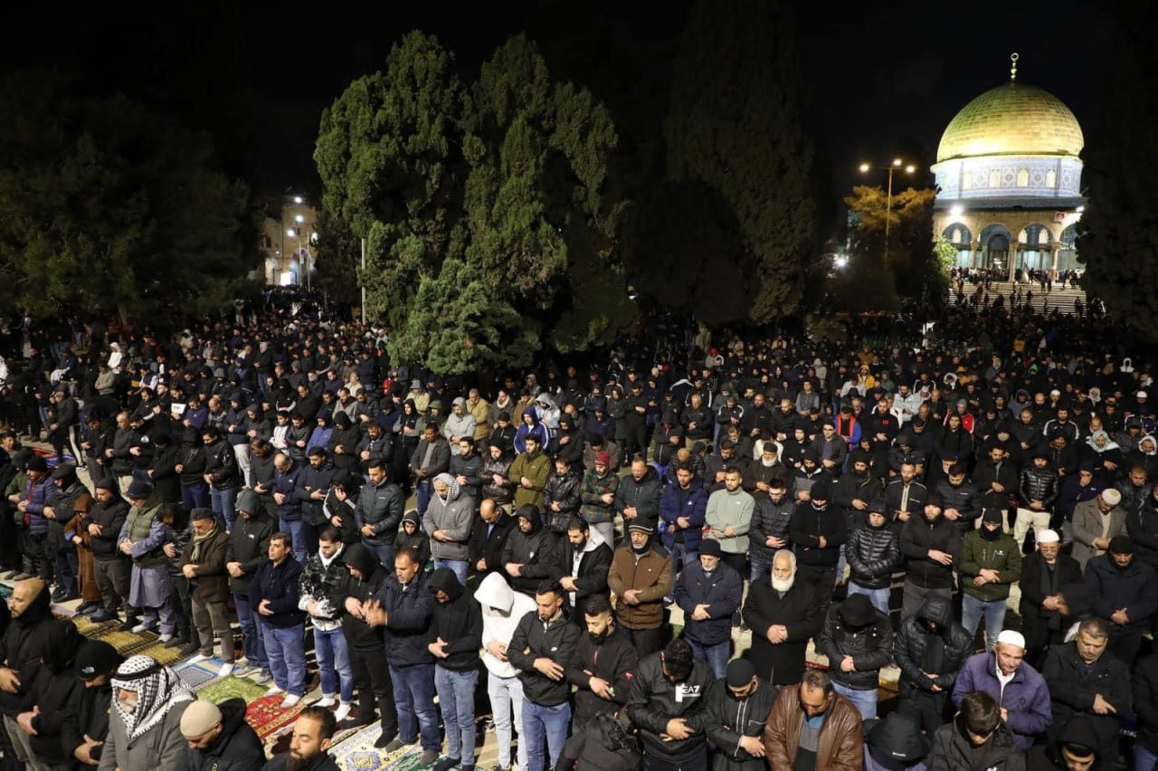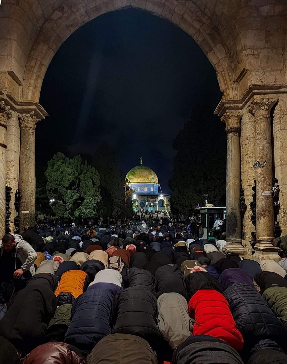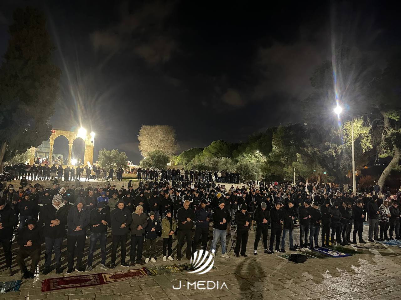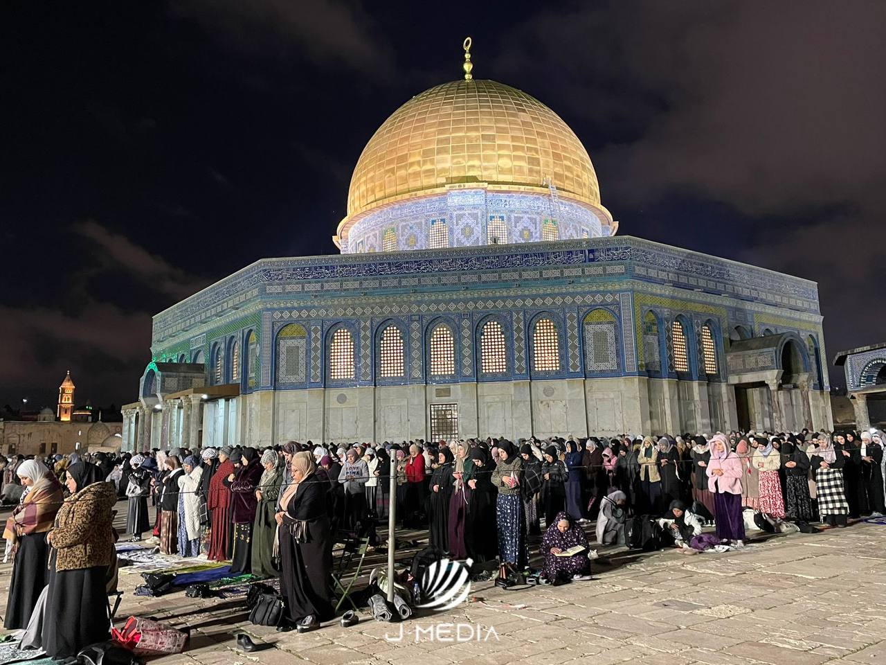 أدى نحو 150 ألف مصل فلسطيني، صلاة العشاء والتراويح، مساء اليوم الجمعة، في المسجد الأقصى المبارك.