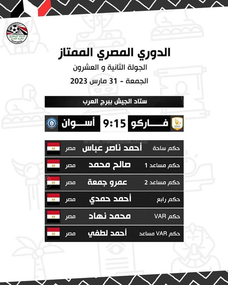 وخاض فريق فاركو مباراة أسوان بتشكيل مكون من: