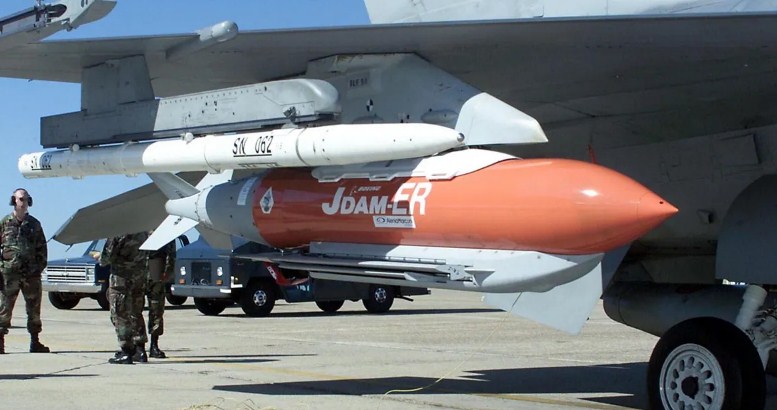وتجدر الإشارة إلى أن قنابل الهجوم المباشر المشترك المعروفة أختصارا باسم جدام (JDAM) هي حزمة منخفضة التكلفة بنتها شركة بوينج، وتتكون هذه الحزمة من عدة واجهزة توجيه، تثبت على القنابل غير الموجهة أو «القنابل » وتحولها إلي ذخائر موجهة "ذكية" تعمل في جميع الأحوال الجوية.
