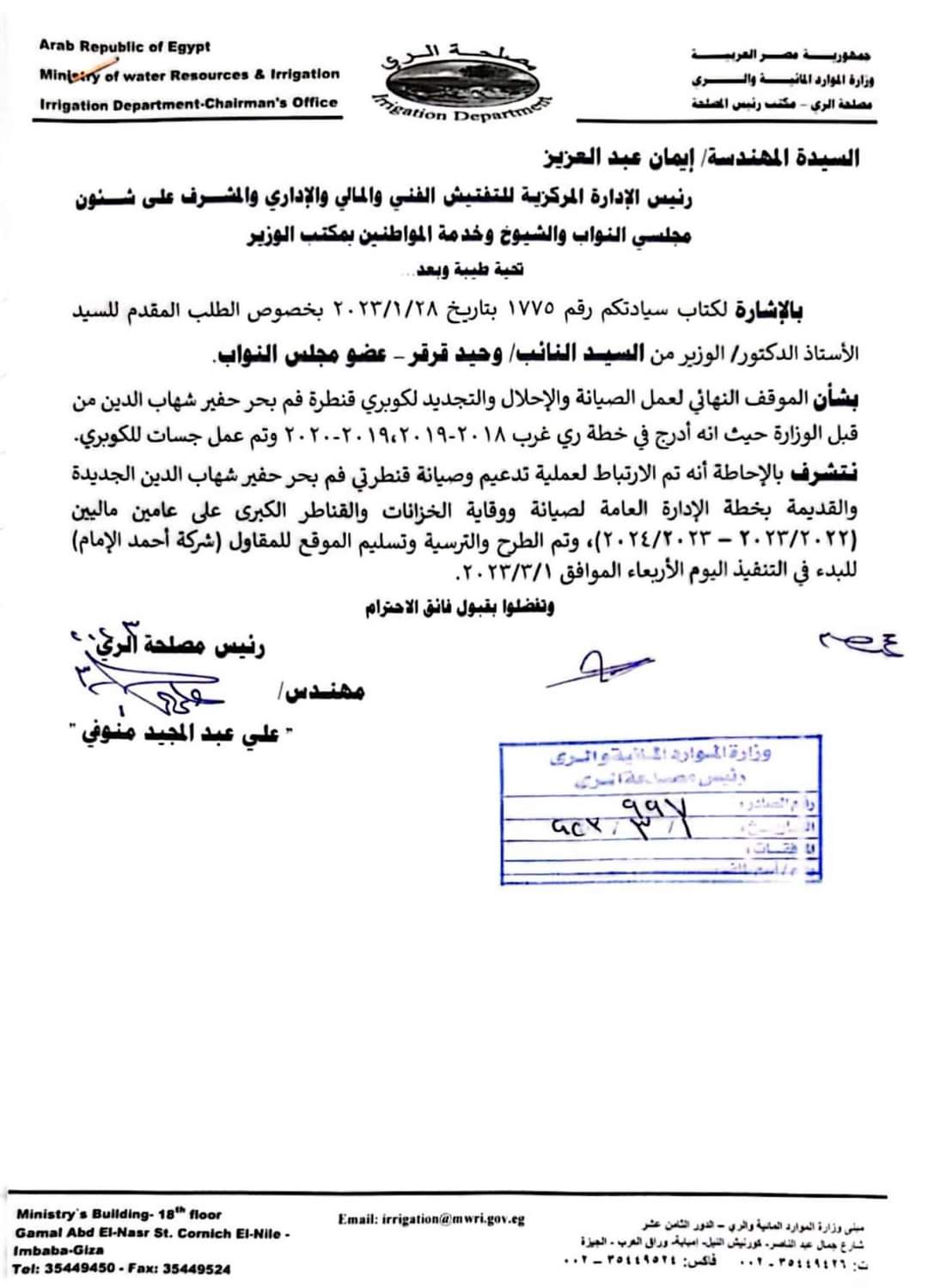 تم الانتهاء من كافة الموافقات وعمل جميع المعاينات والجسات لموقع الكوبرى