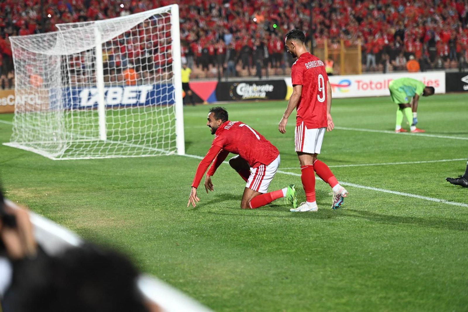وحرصت الجماهير على الهتاف لمحمود كهربا خلال احتفاله مع زميله بيرسي تاو بصعود المارد الأحمر للدور ربع النهائي بدوري بطال أفريقيا.