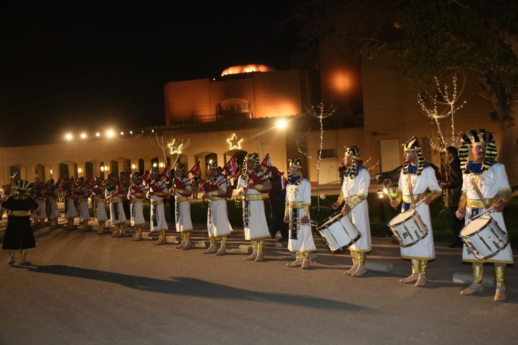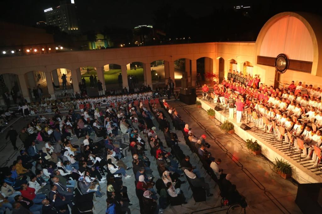 ووسط حشد جماهيرى كبير ضم مختلف الشرائح العمرية والاجتماعية قدمت فرقة الموسيقات العسكرية بقيادة كل من: المايسترو أحمد سليم والمايسترو عهدي عبد الرحمن تشكيلات حركية متنوعة.