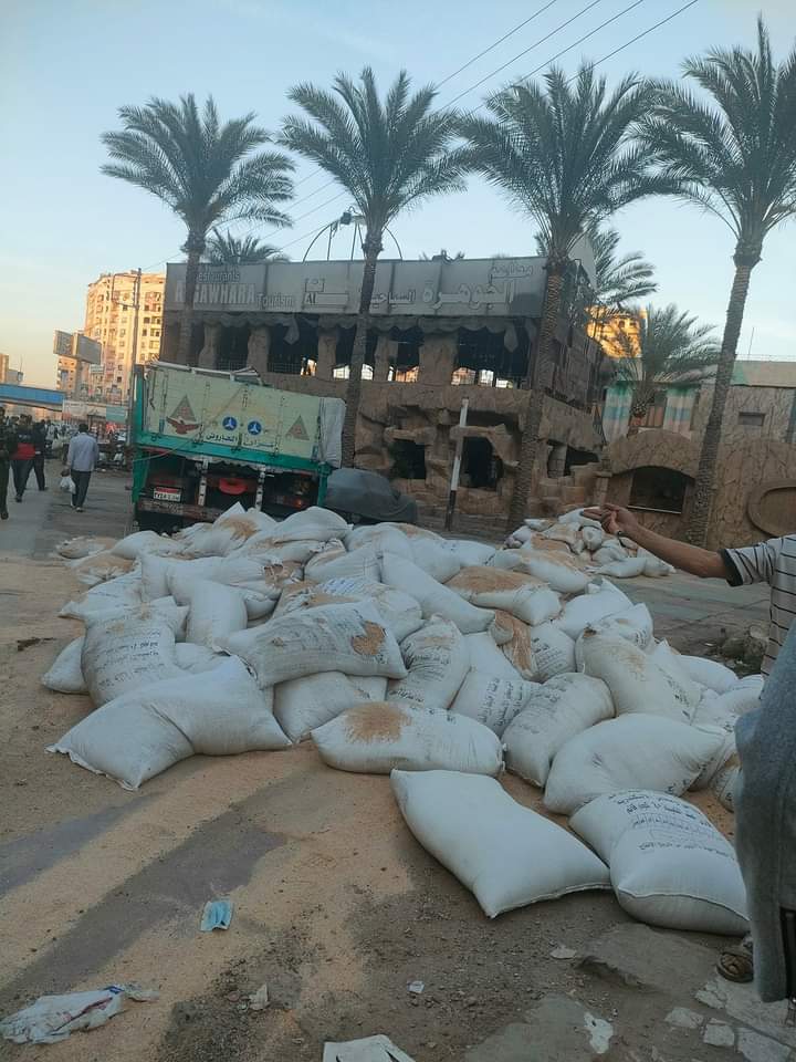 انقلاب سيارة نقل محملة بأطنان "ردة" على طريق طنطا - إسكندرية الزراعي (صور)
